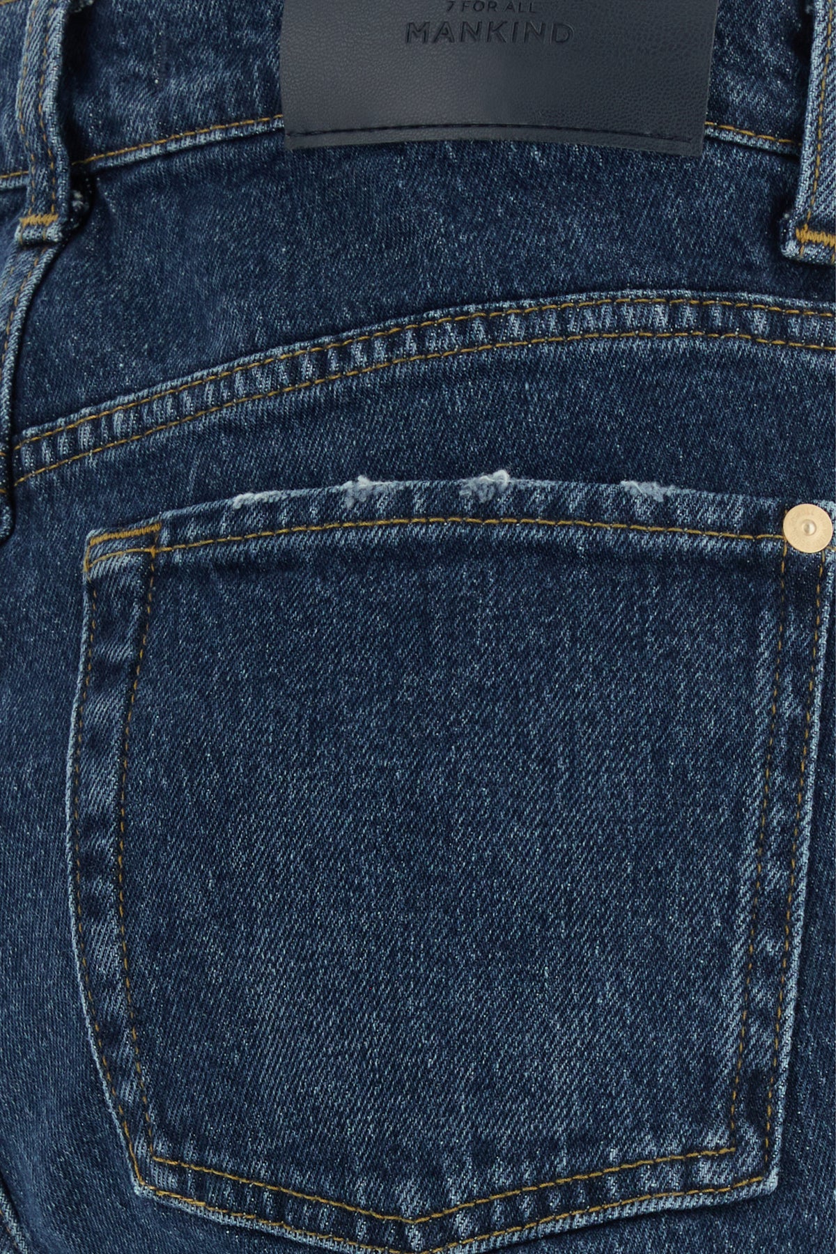 Jeans realizzati in denim di cotone stretch sdrucito arricchiti da etichetta logata tonale sul retro.