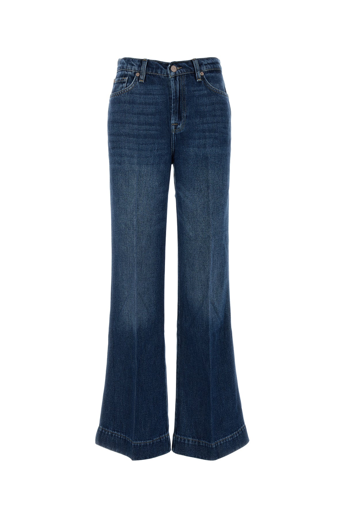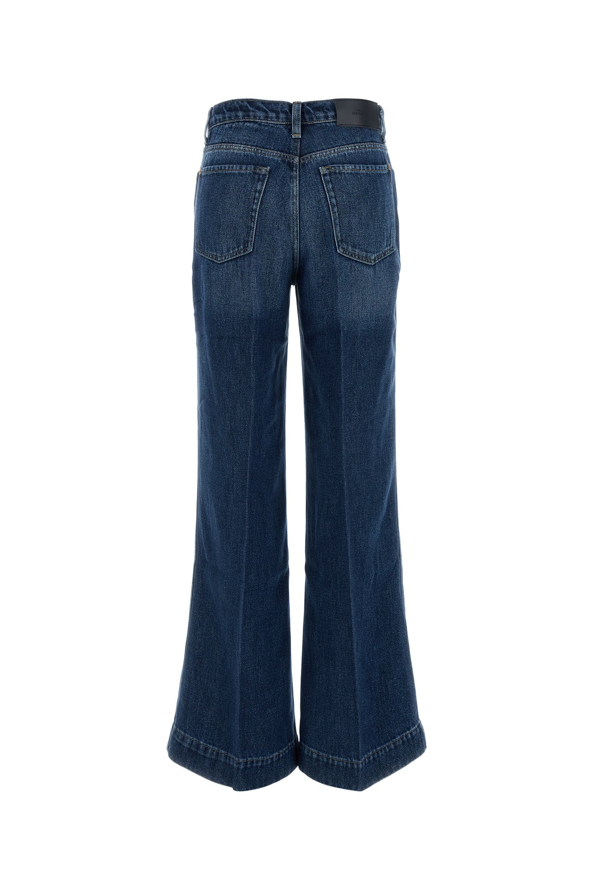 Jeans realizzati in denim ad effetto slavato arricchiti da etichetta logata a contrasto sul retro.