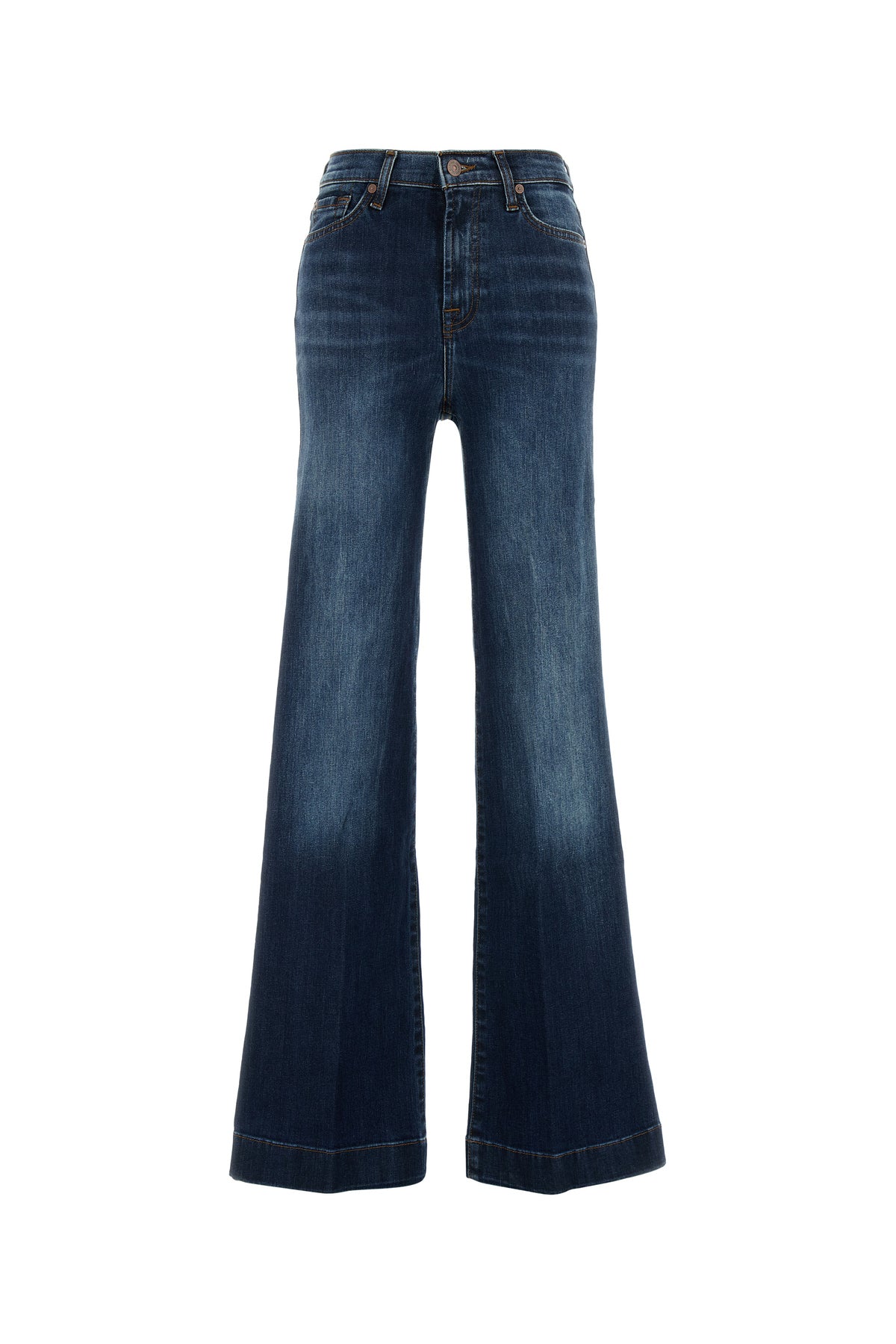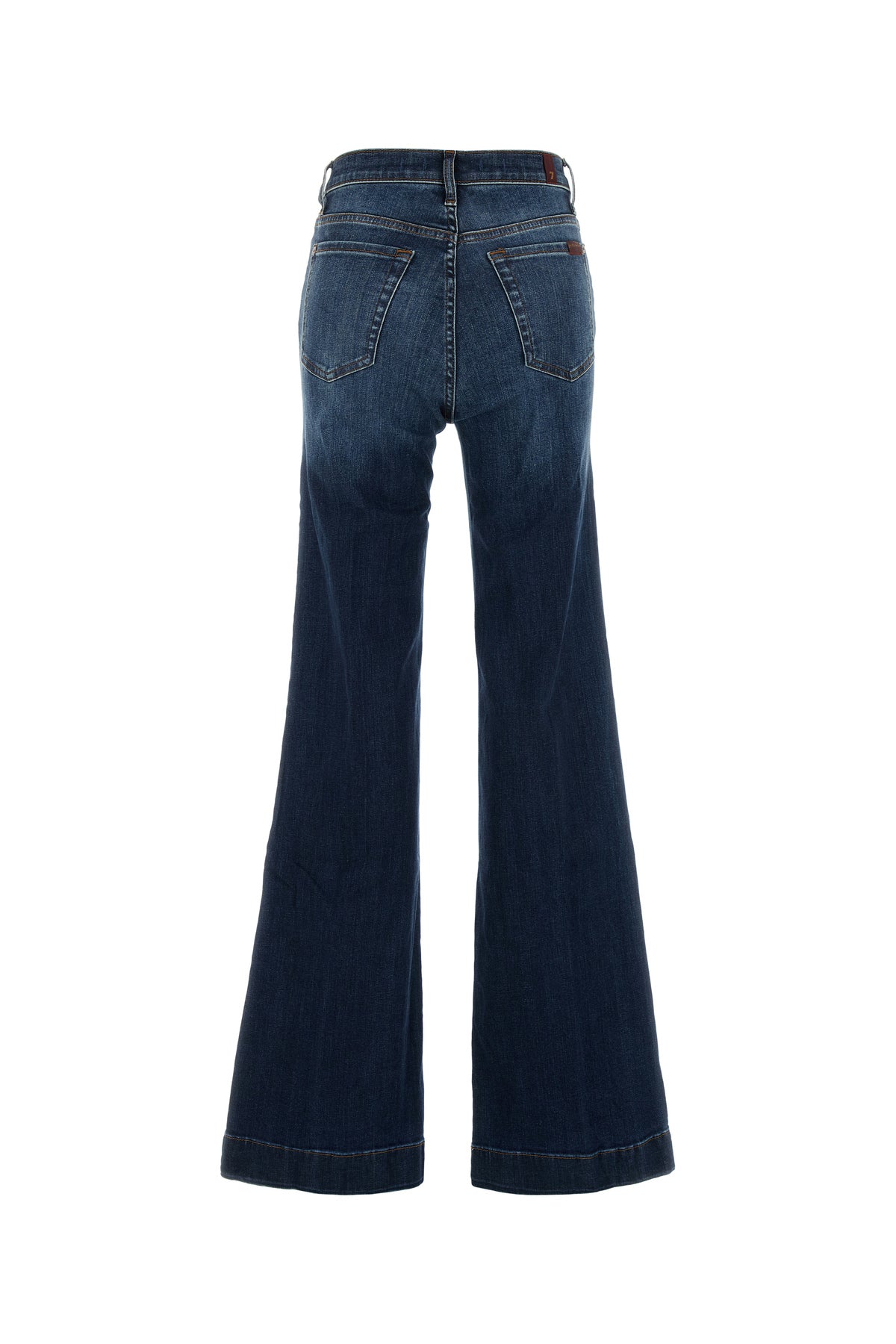 Jeans a zampa realizzati in denim di cotone stretch leggermente slavato arricchiti da etichette logate sul retro.