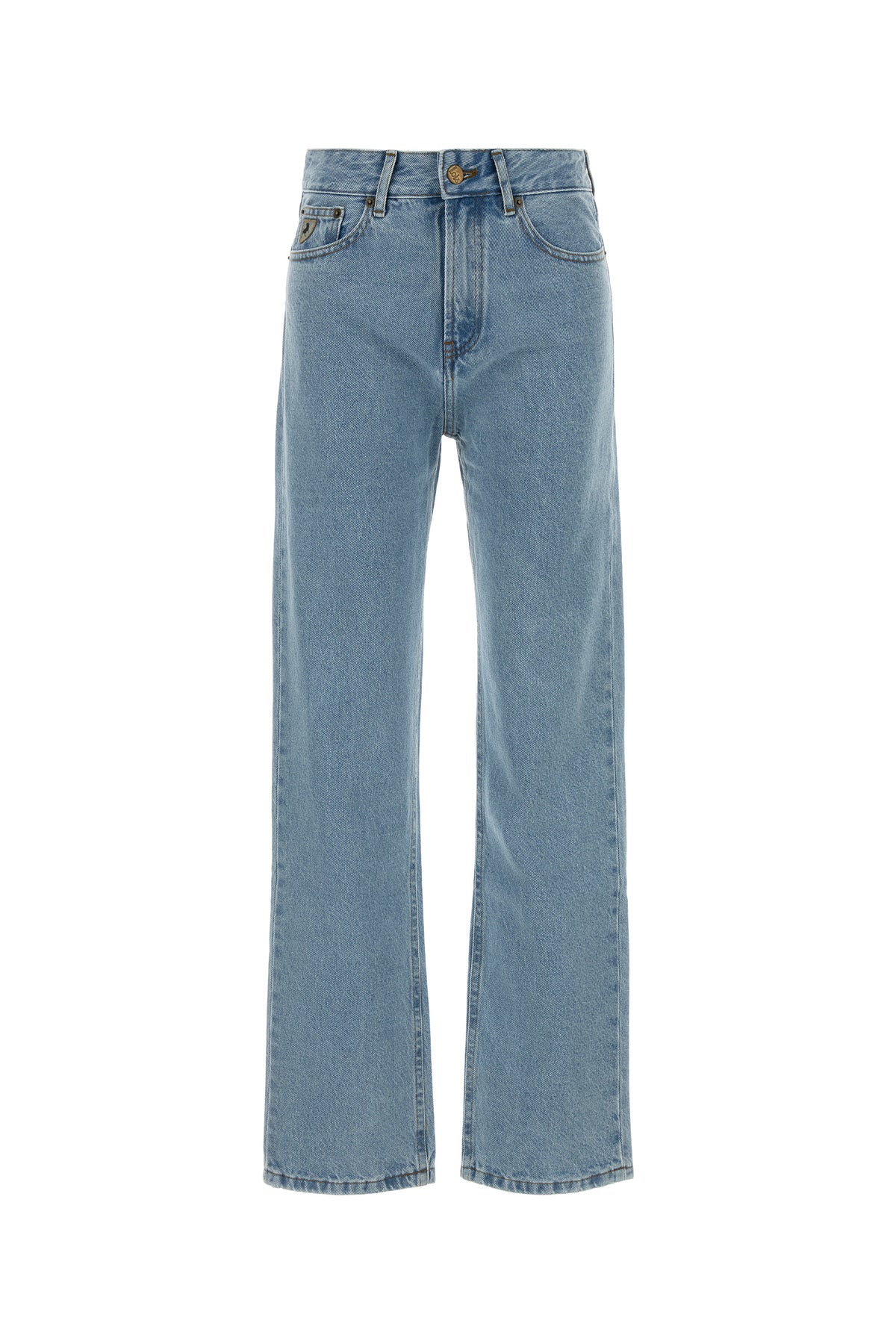 Jeans realizzati in denim di puro cotone arricchiti da applicazione logata sulla parte frontale e sul retro.