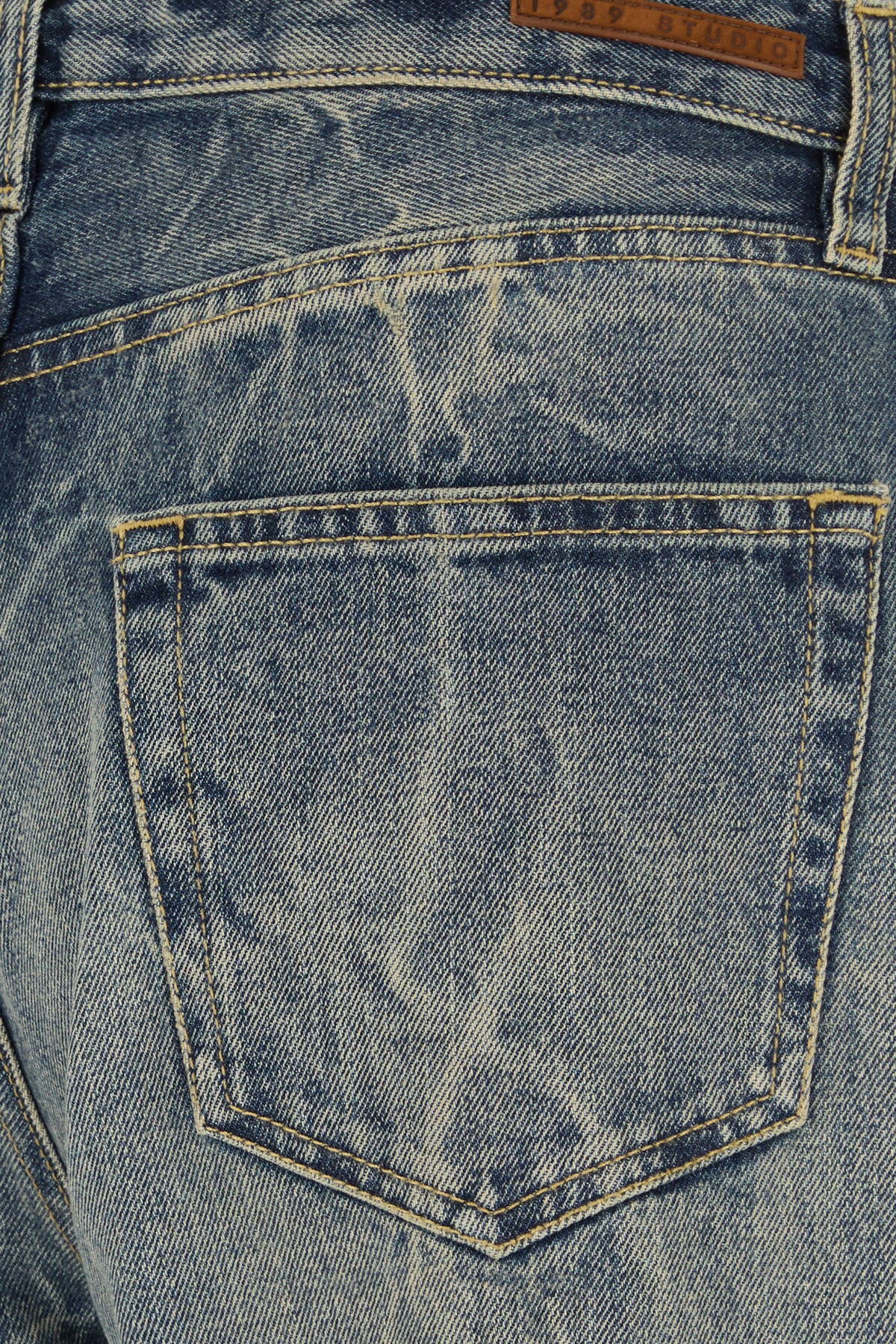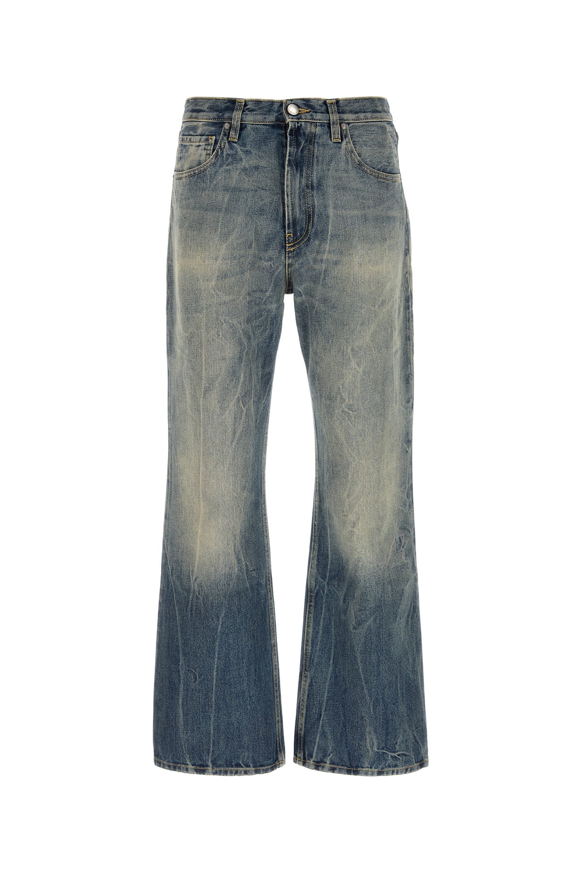 Jeans realizzati in denim di puro cotone slavato ad effetto vintage arricchiti da etichetta logata sul retro.