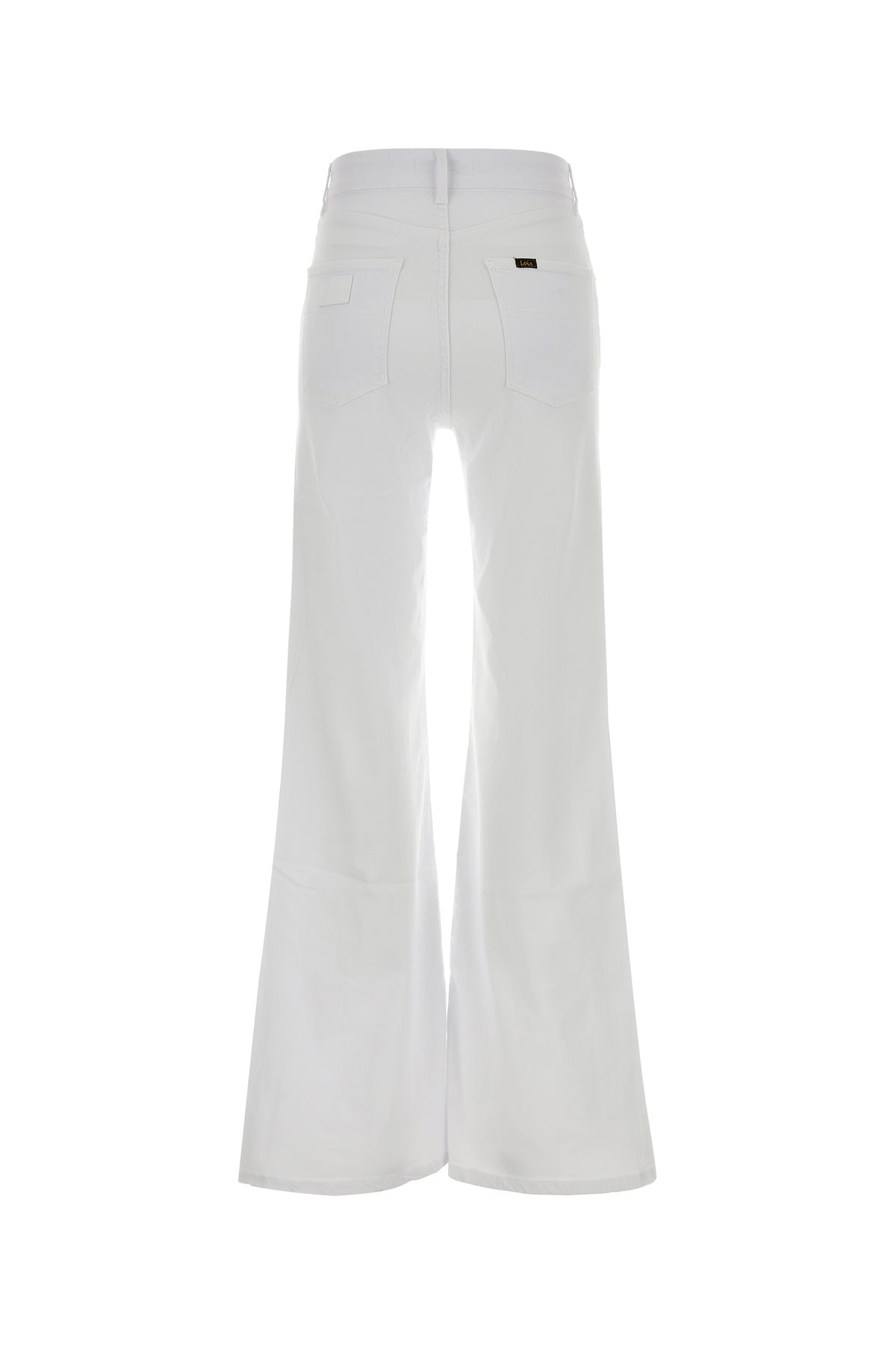 Jeans a zampa realizzati in denim stretch arricchiti da etichetta logata sul retro.