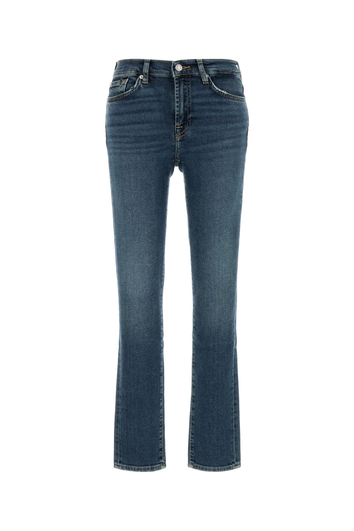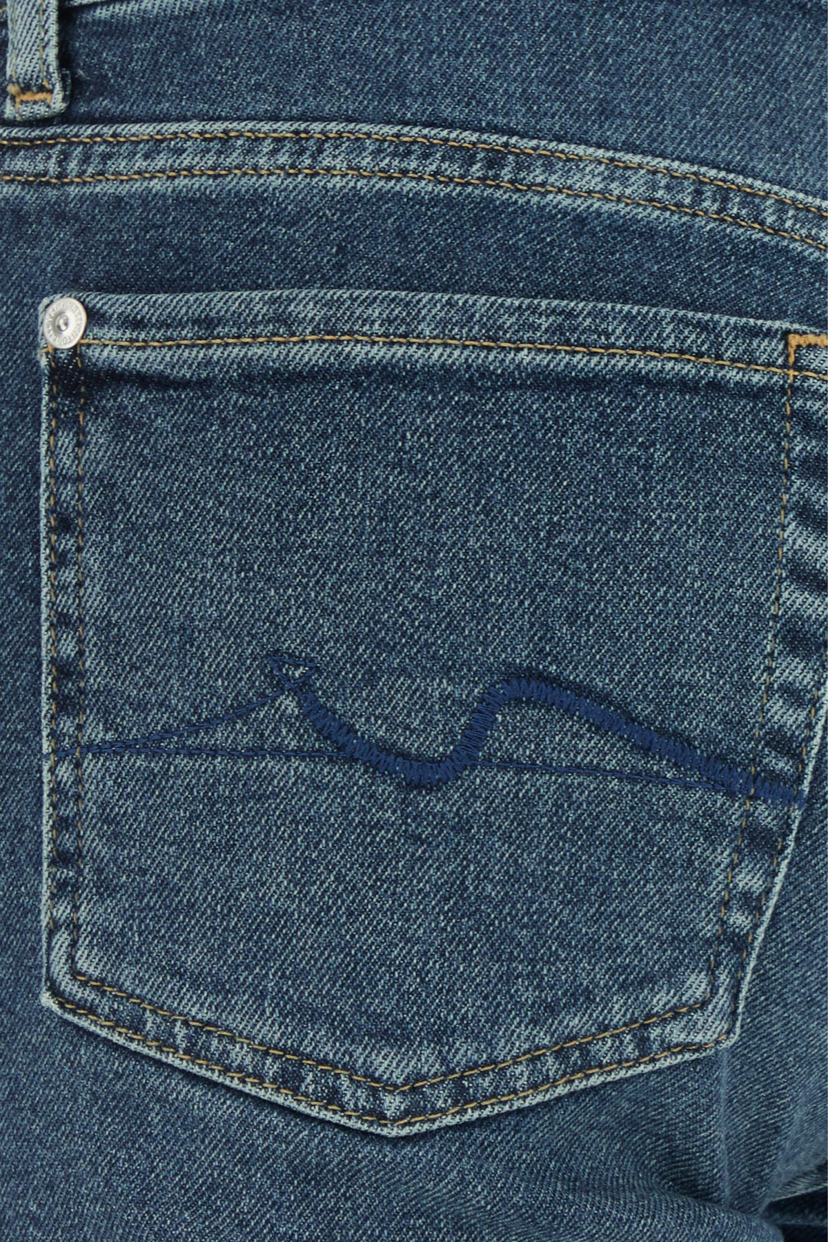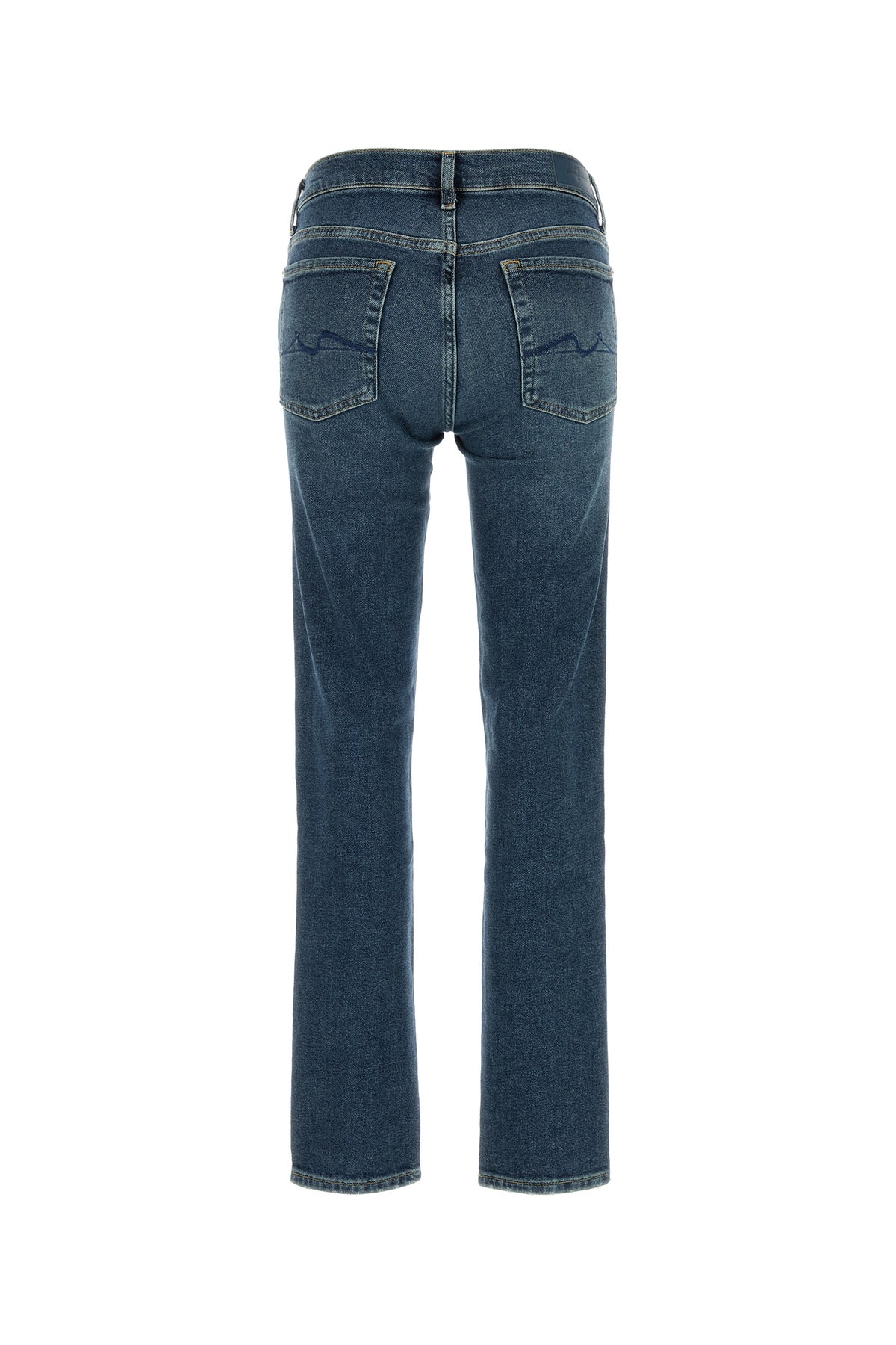 Jeans realizzati in denim di misto cotone stretch leggermente slavato effetto vintage caratterizzati da ricamo tonale sul retro arricchiti da etichetta logata in pelle sul retro.