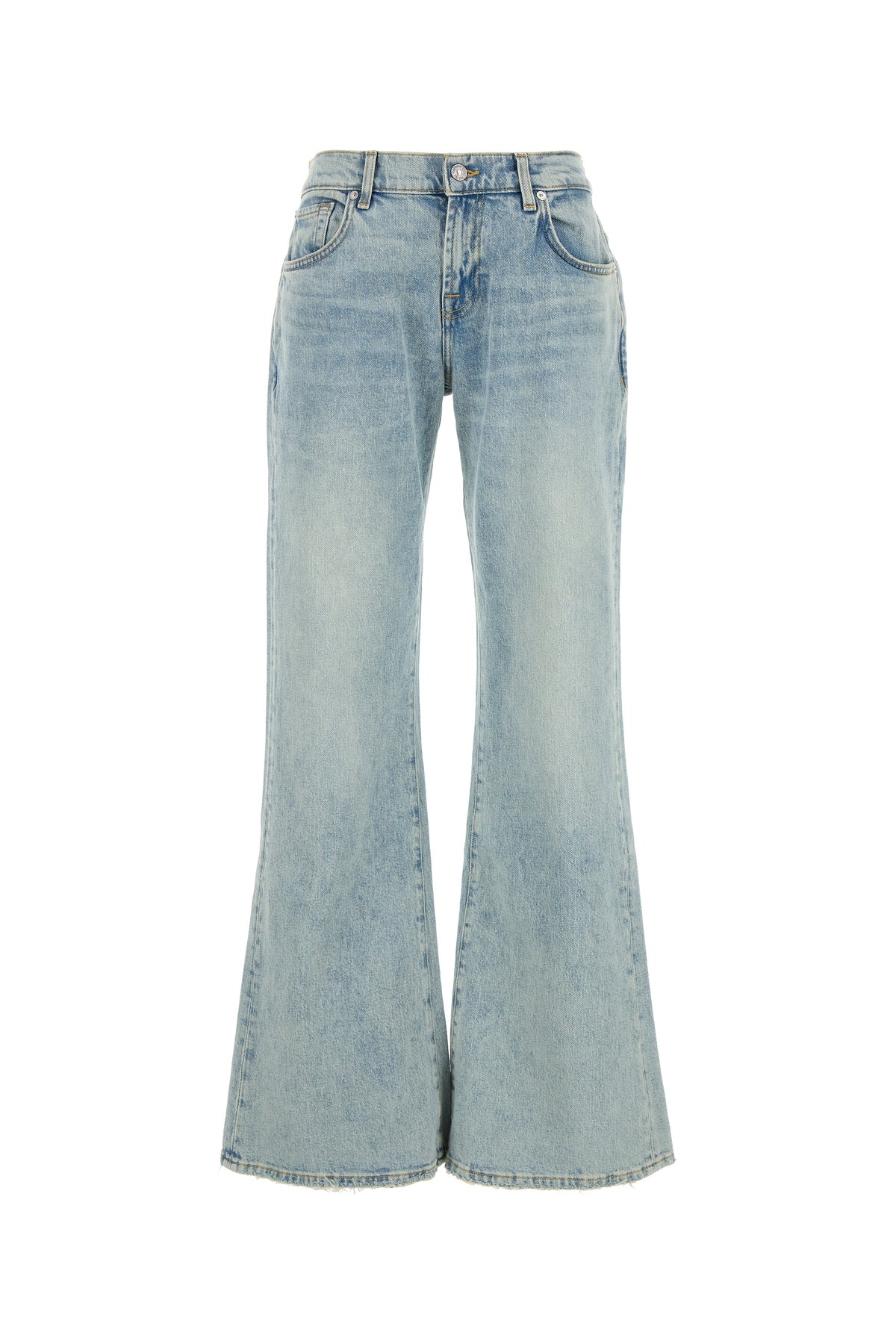 Jeans realizzati in denim di cotone stretch slavato arricchiti da etichetta logata in pelle sul retro.