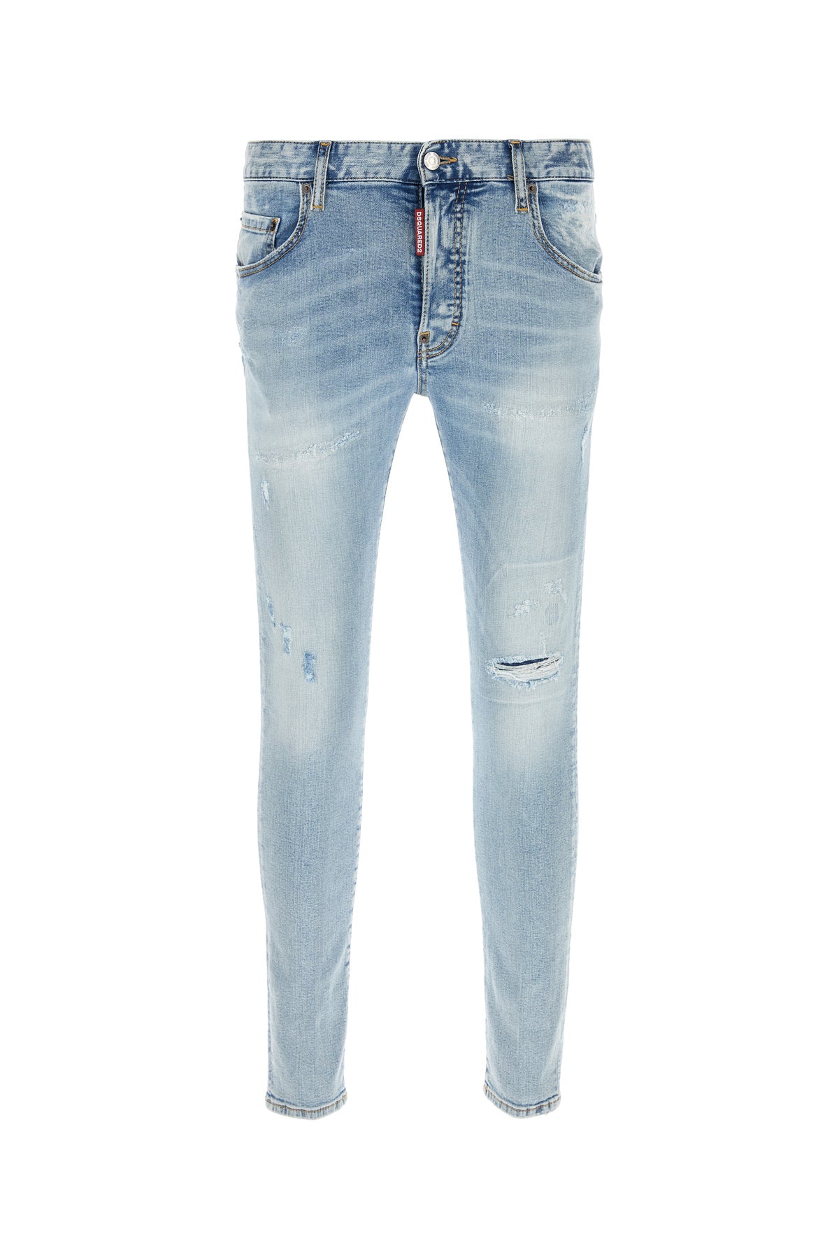 Jeans realizzati in denim di cotone stretch slavato e sdrucito arricchiti da etichetta logata in pelle a contrasto sul retro