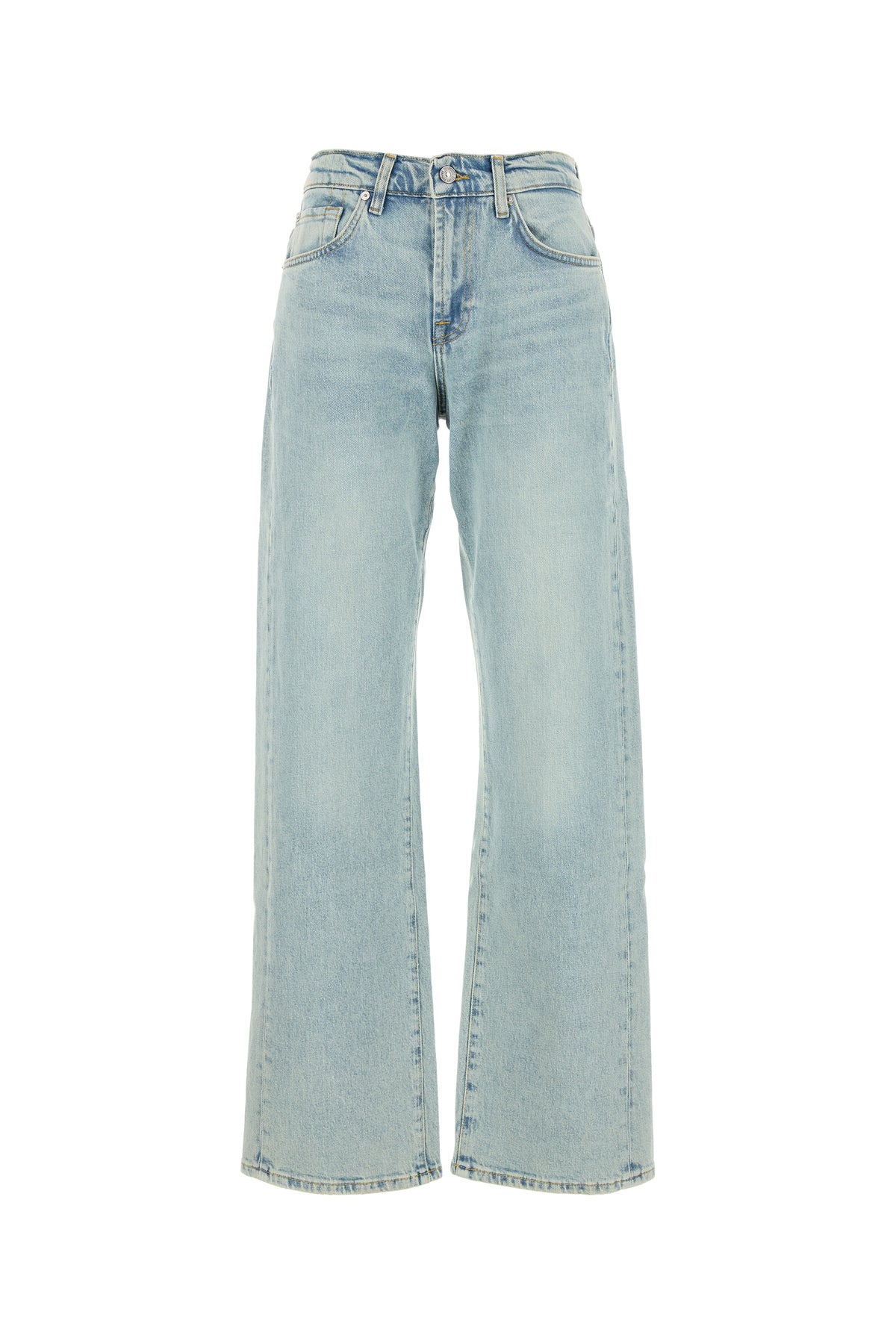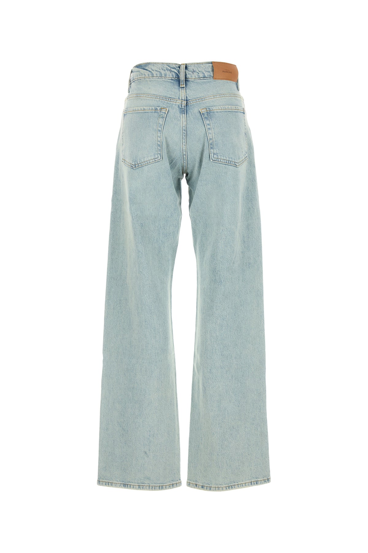 Jeans regular realizzati in denim di cotone stretch slavato arricchiti da etichetta logata a contrasto sul retro.