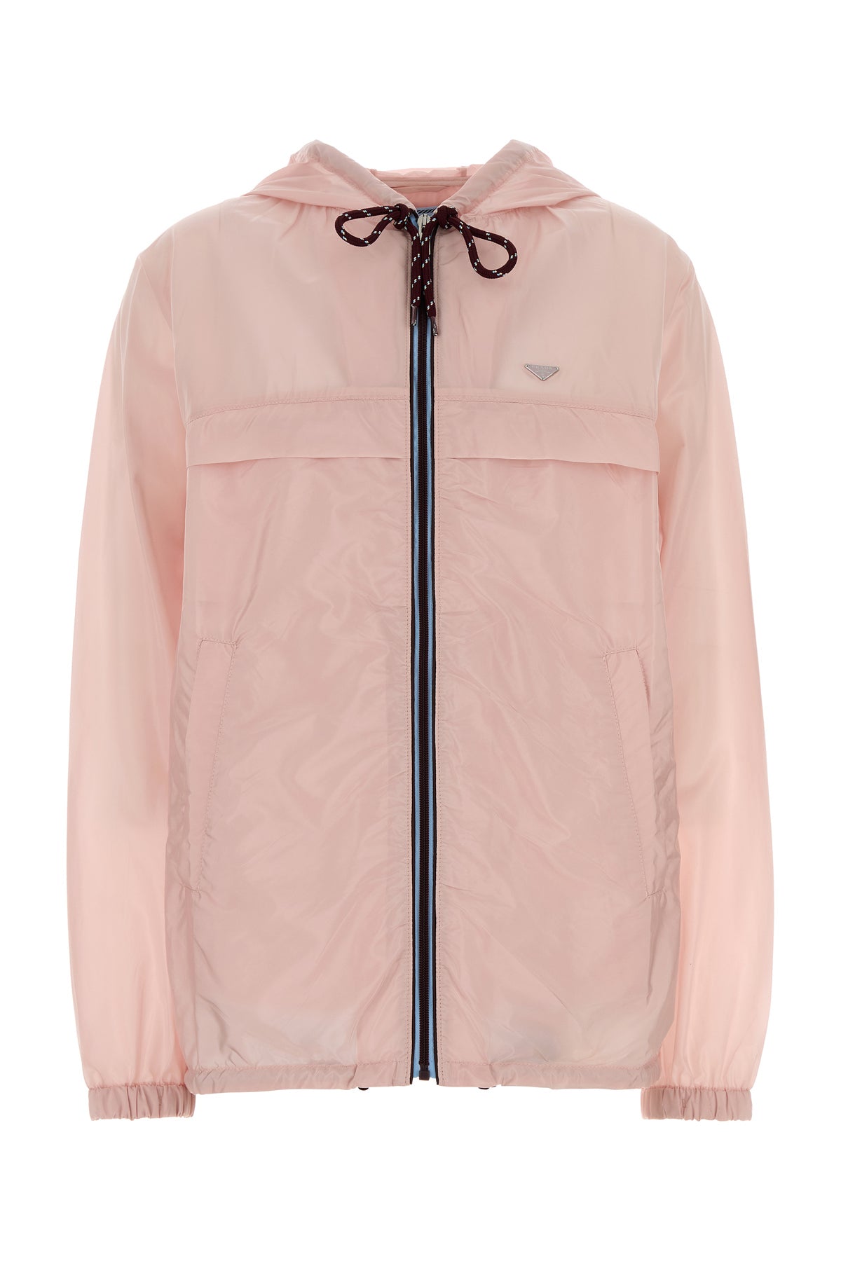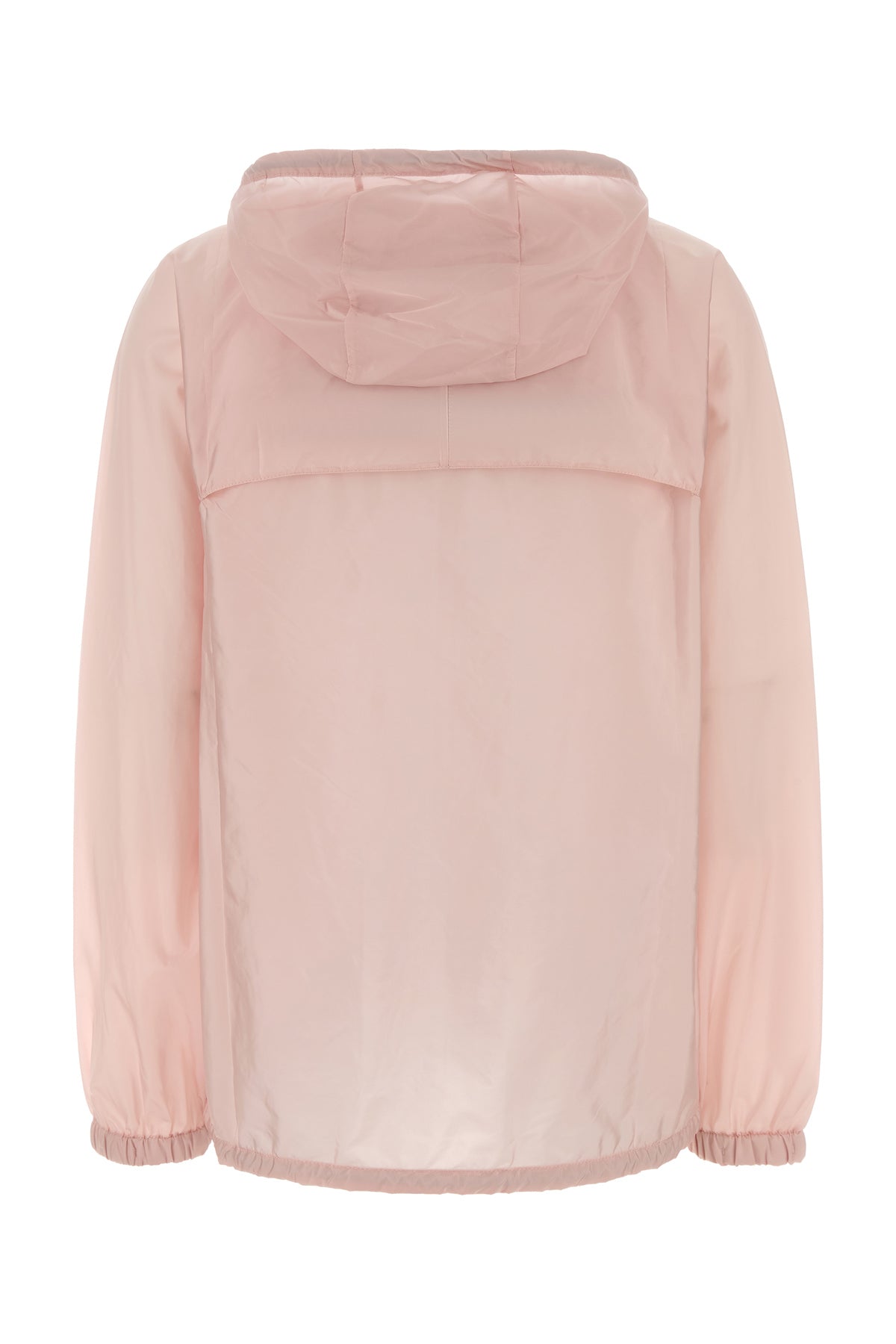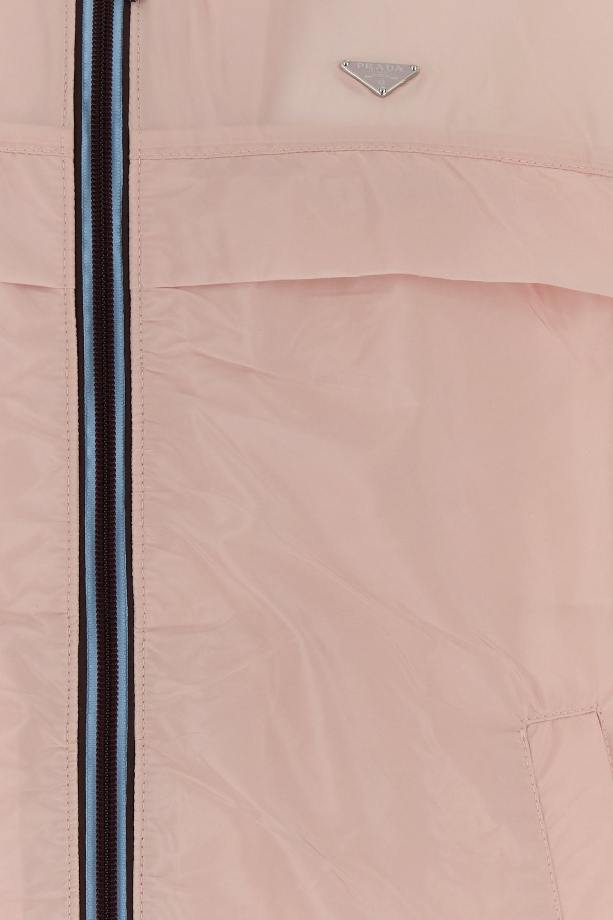K-way realizzato in Re-Nylon arricchito da iconico triangolo logato in metallo sul petto.