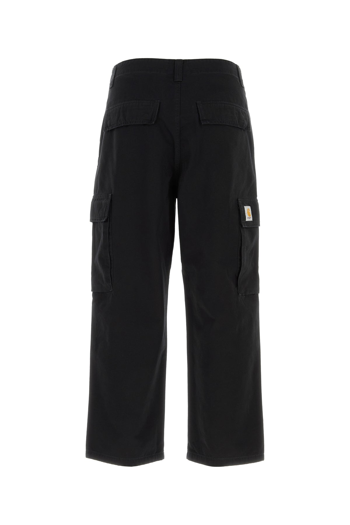 Pantalone cargo realizzato in tela di puro cotone arricchito da etichetta logata a contrasto sul lato.