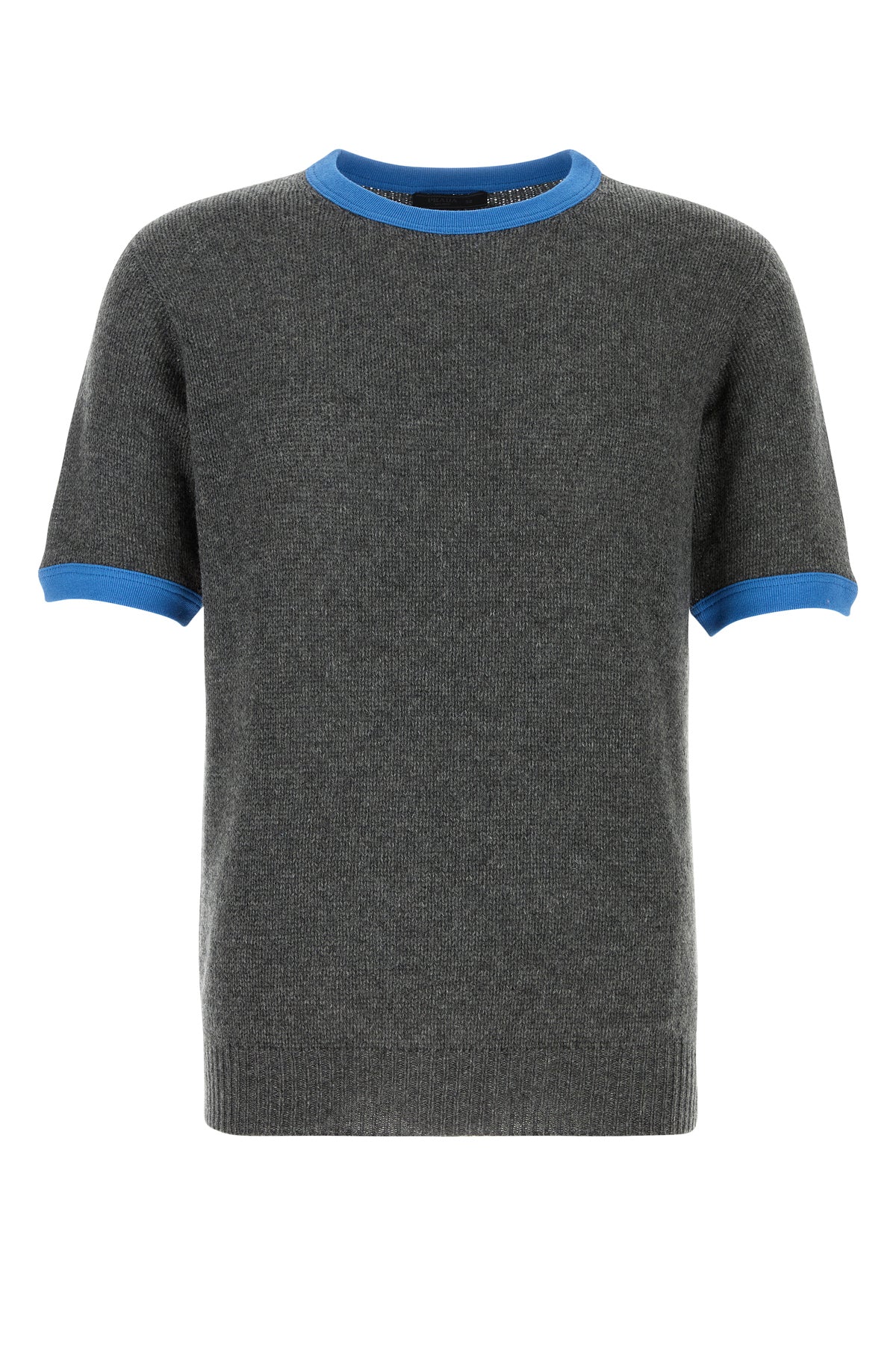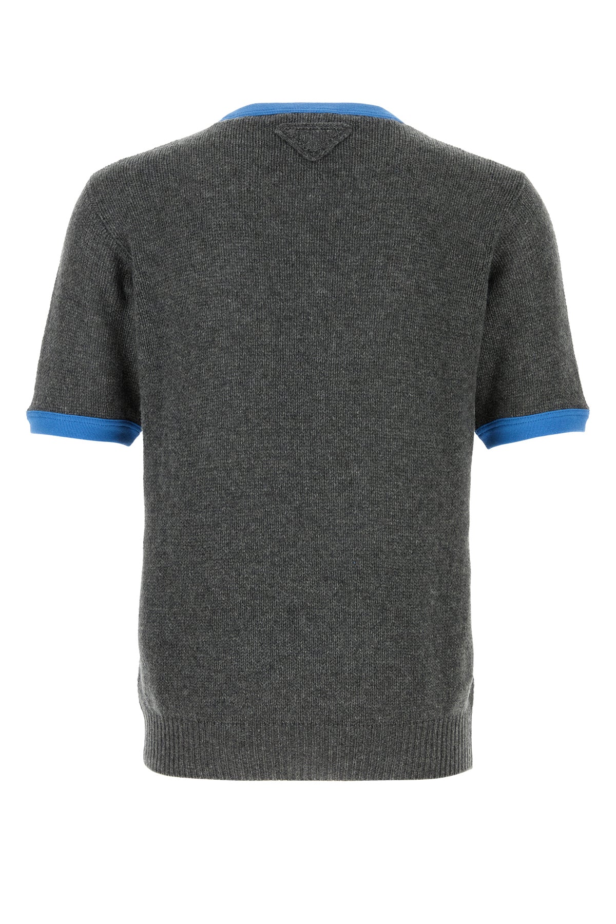 Maglione a maniche corte realizzato in puro cashmere arricchito da iconico triangolo in tessuto tonale sul retro.