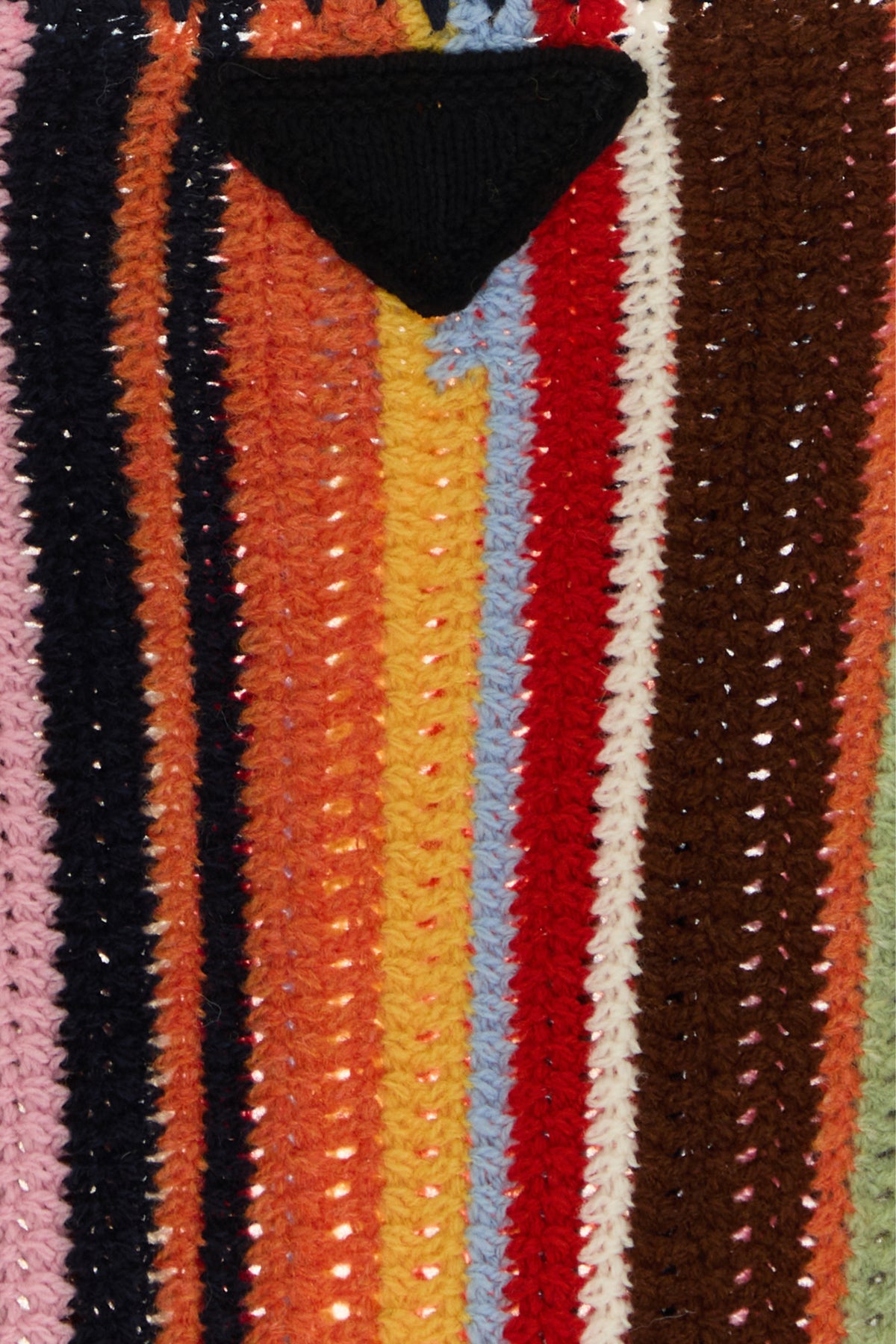Maglione realizzato in crochet di lana vergine e cashmere arricchito da iconico triangolo in tessuto sul retro.