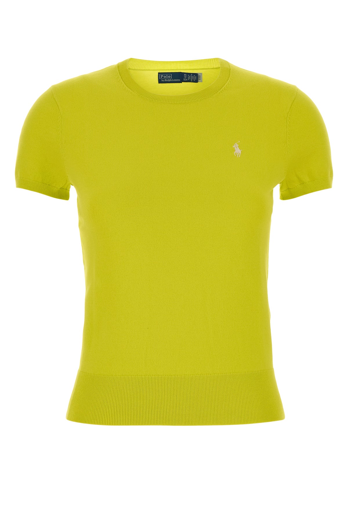 Maglione a maniche corte realizzato in misto cotone stretch caratterizzato da iconico logo ricamato sul petto.