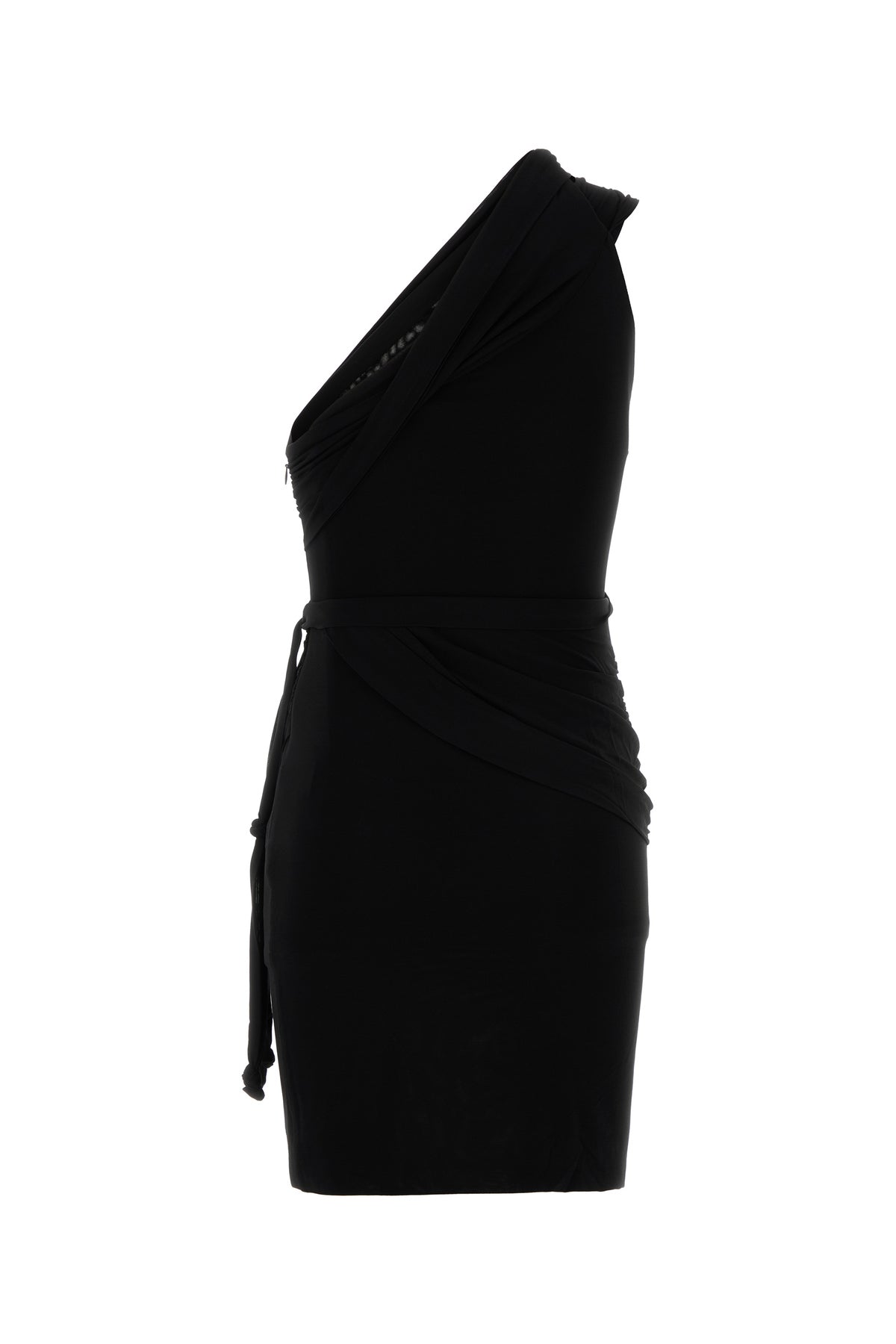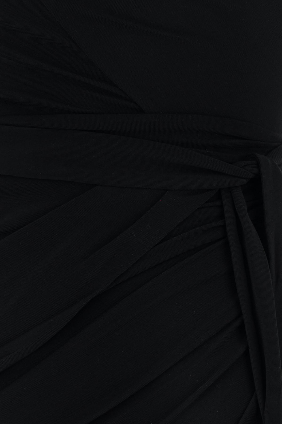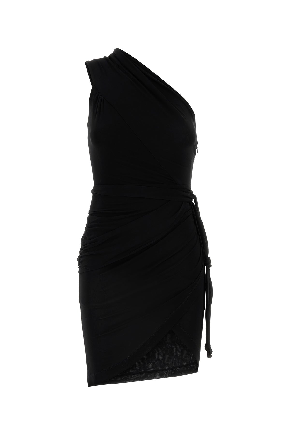 Mini abito monospalla realizzato in viscosa stretch caratterizzato da lacci da annodare in vita.