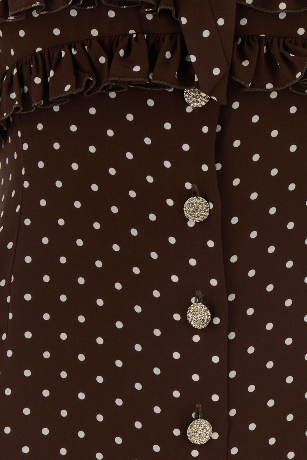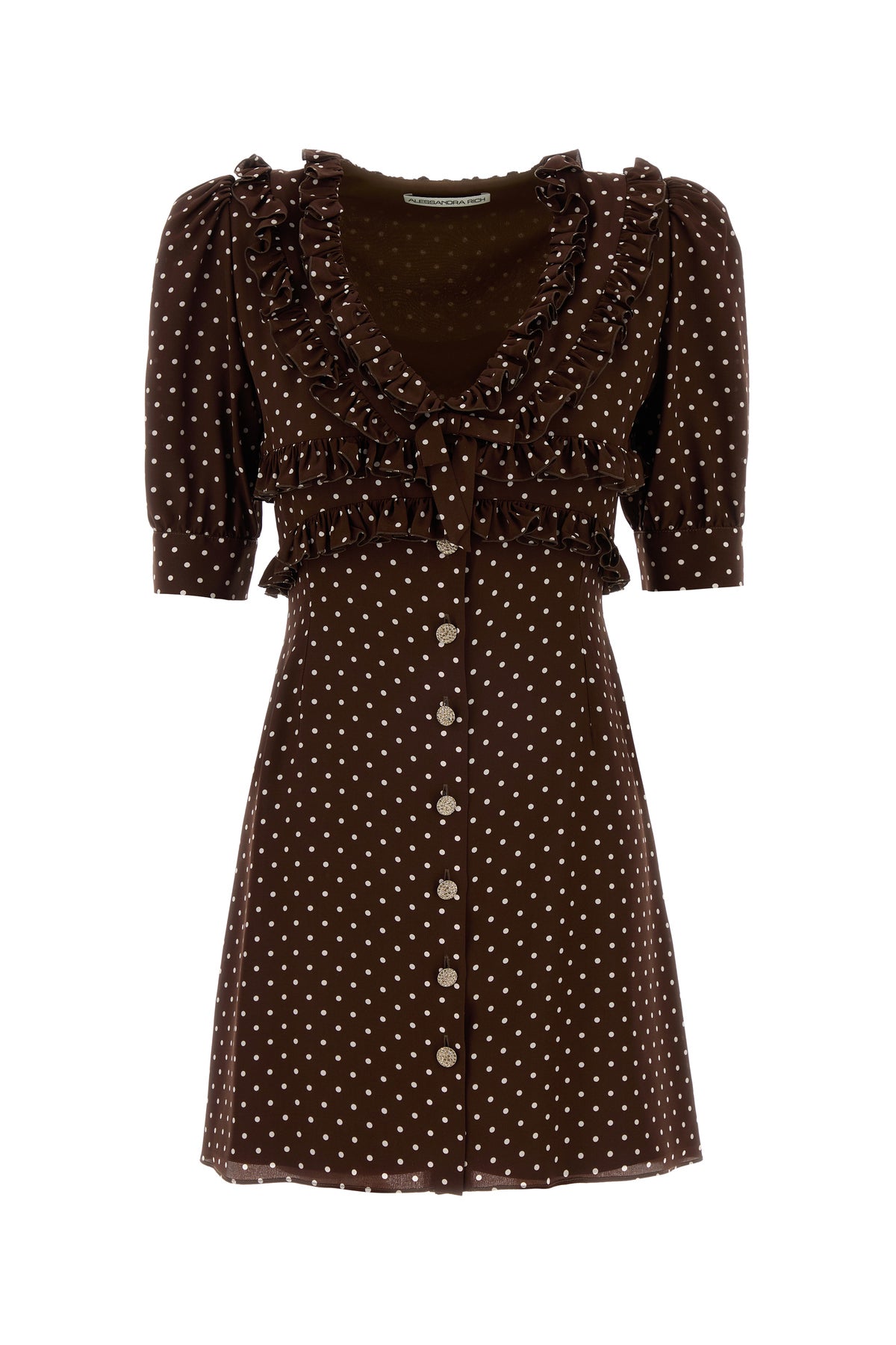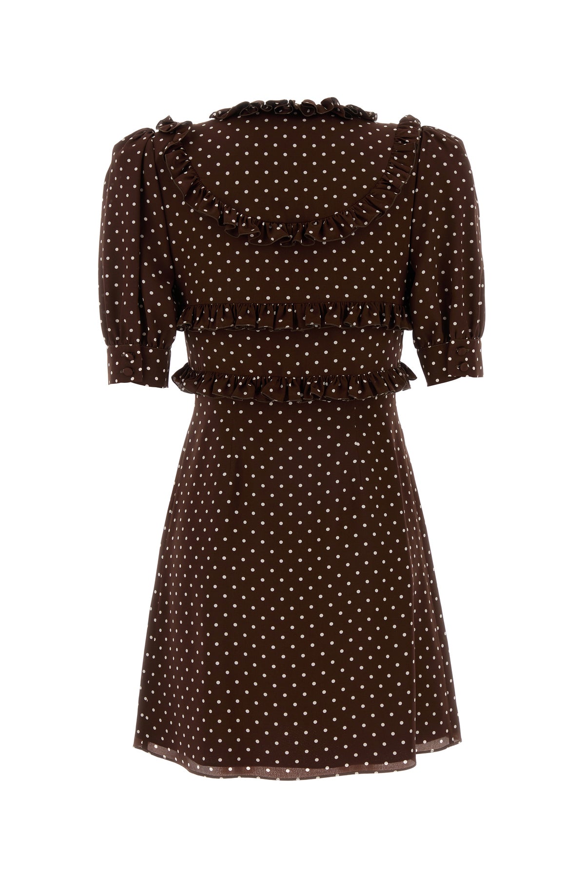 Mini abito realizzato in crepe di pura seta caratterizzato da stampa a pois su tutta la superficie.