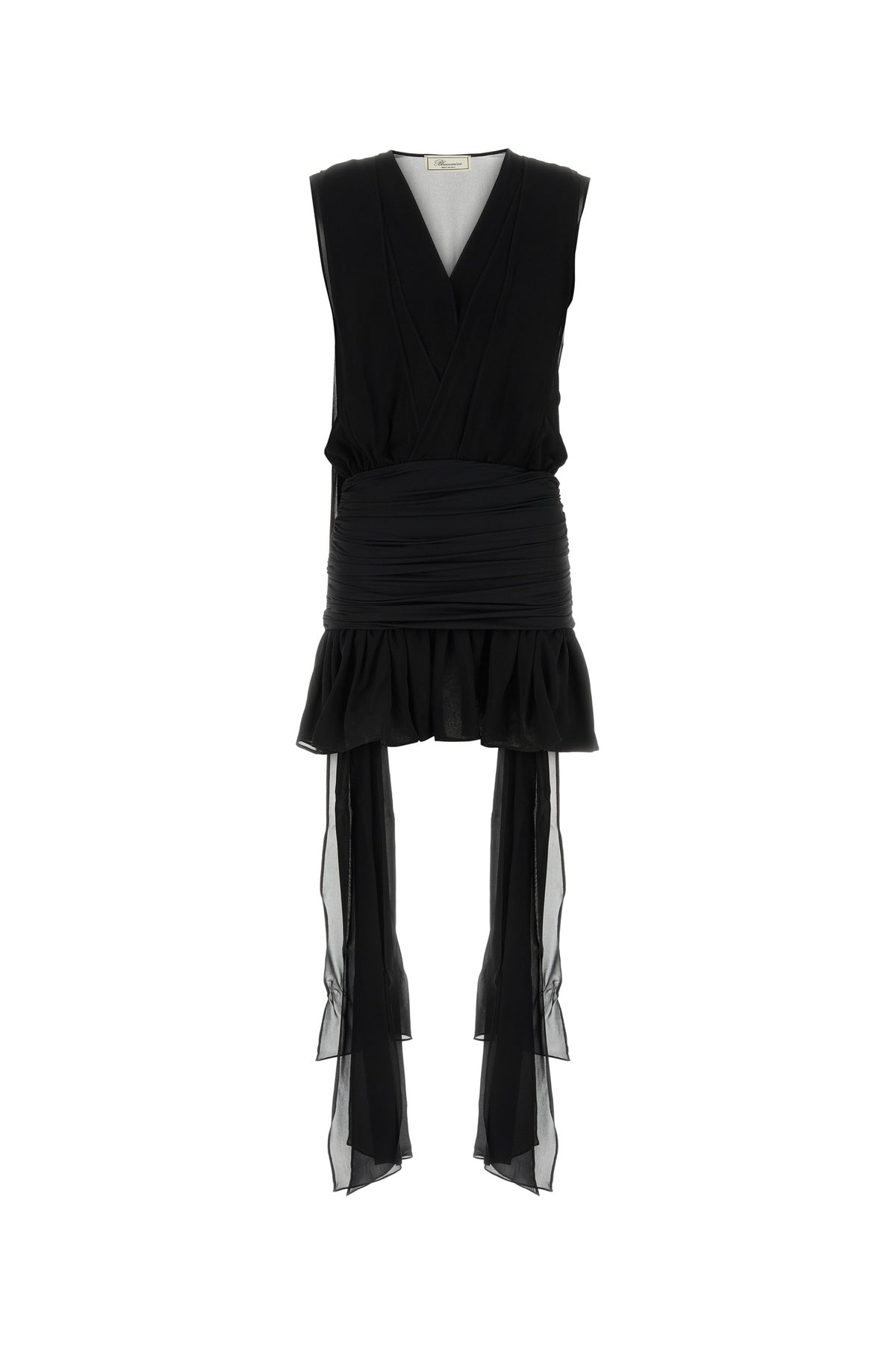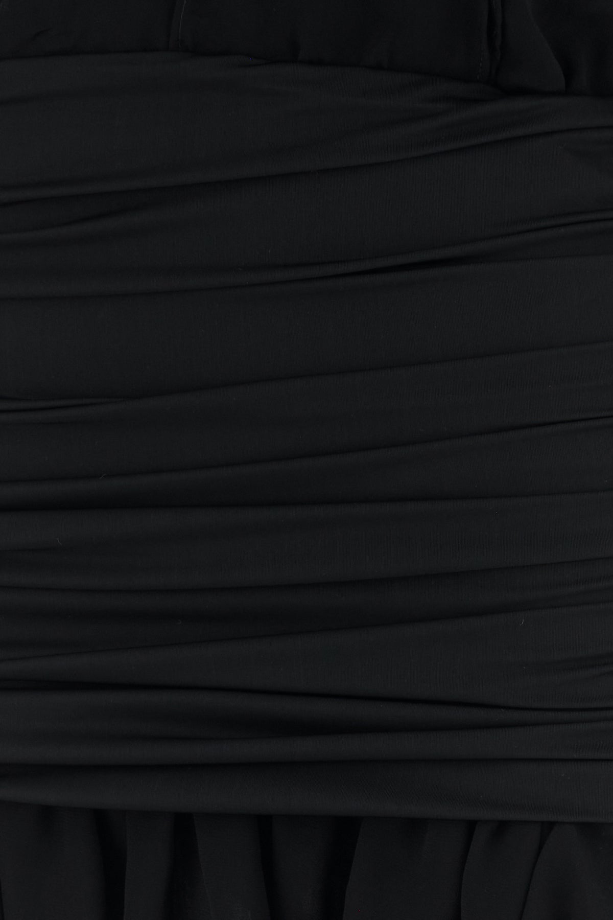 Mini abito realizzato in georgette con inserto in raso in vita arricchito da bande in tessuto sui lati.