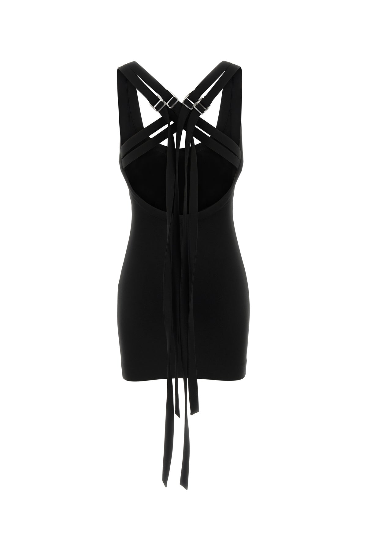 Mini abito realizzato in jersey arricchito da cinturini con fibbie metalliche logate sul retro.