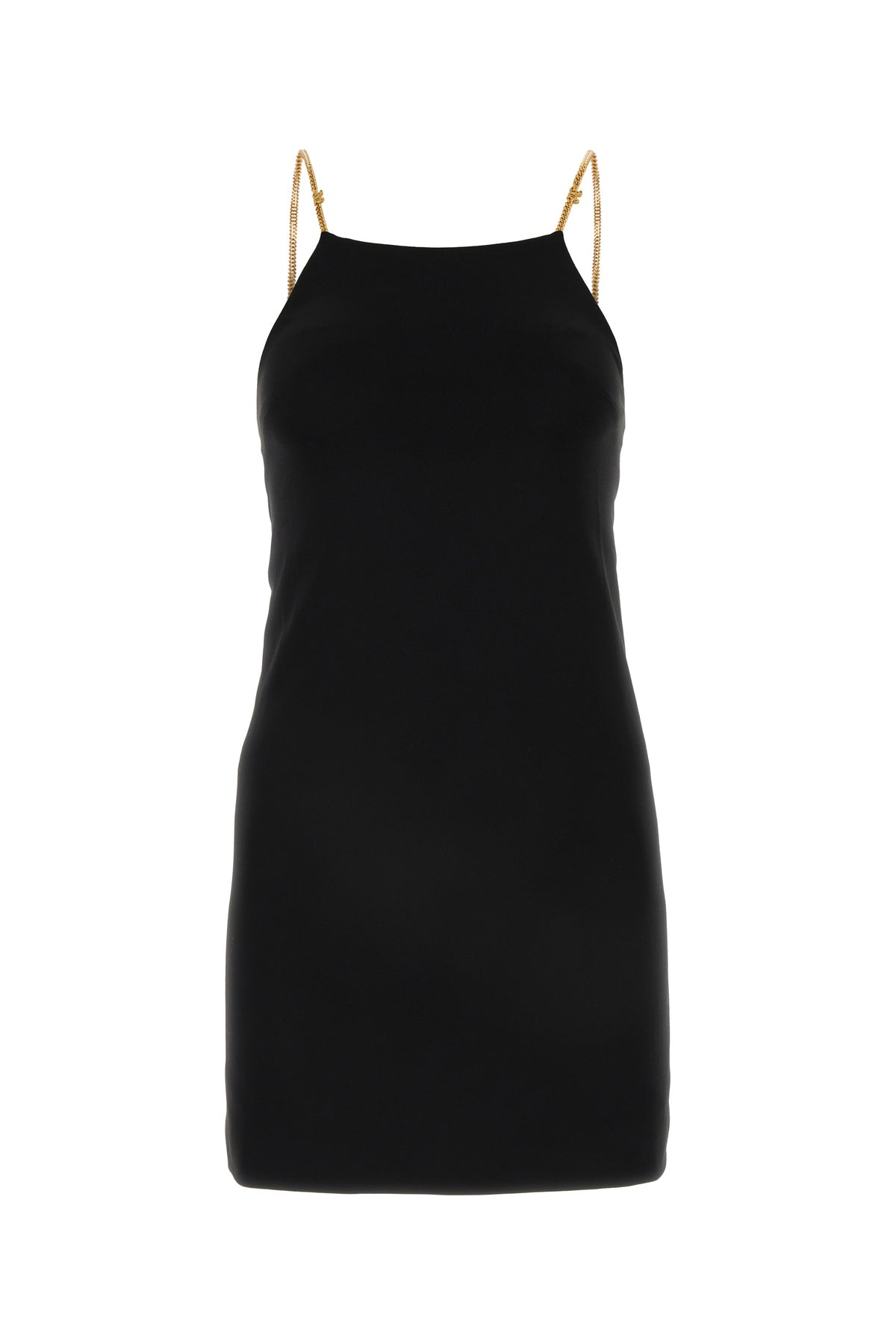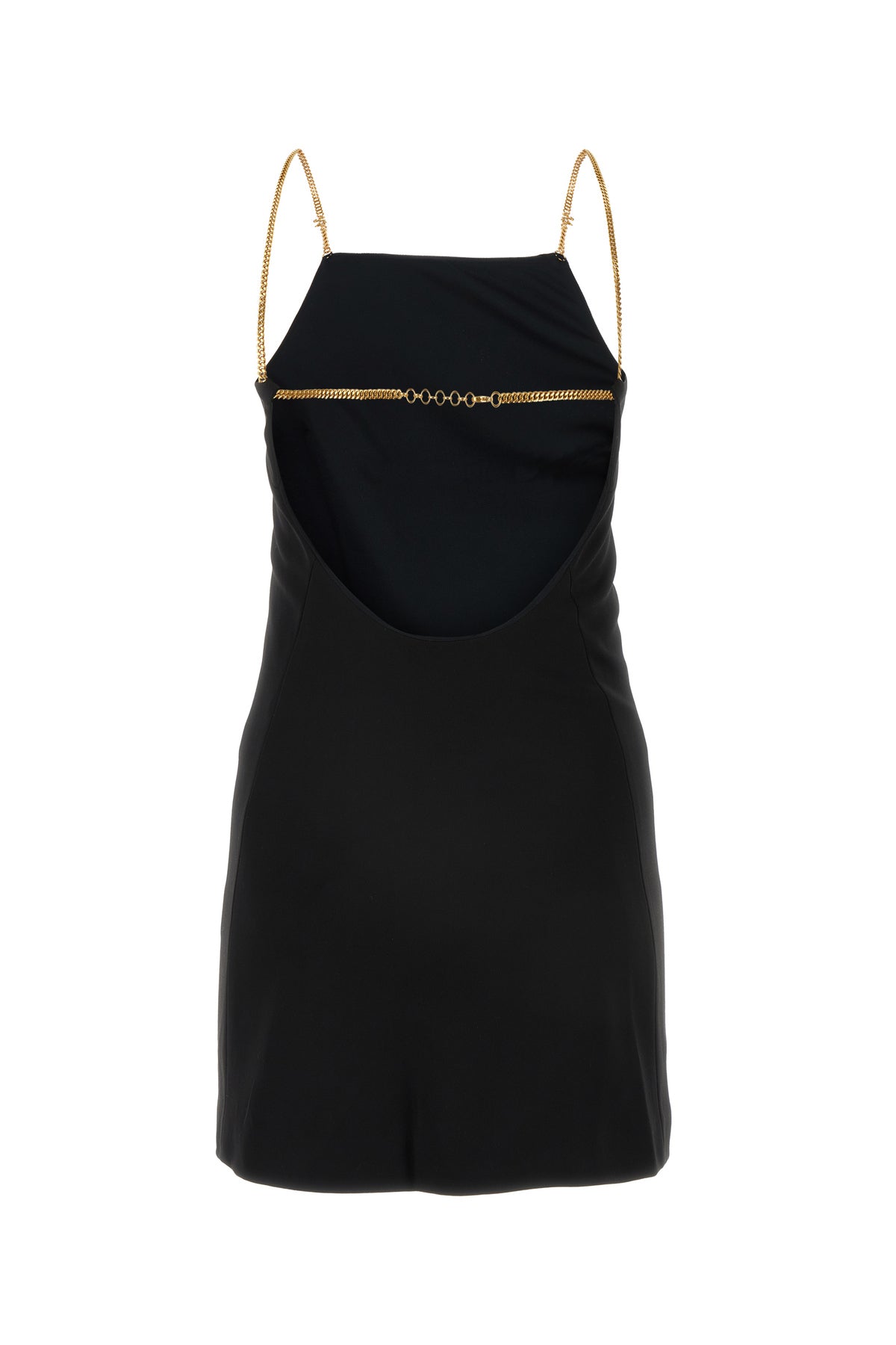 Mini abito realizzato in jersey arricchito da spalline in catena metallica logata.