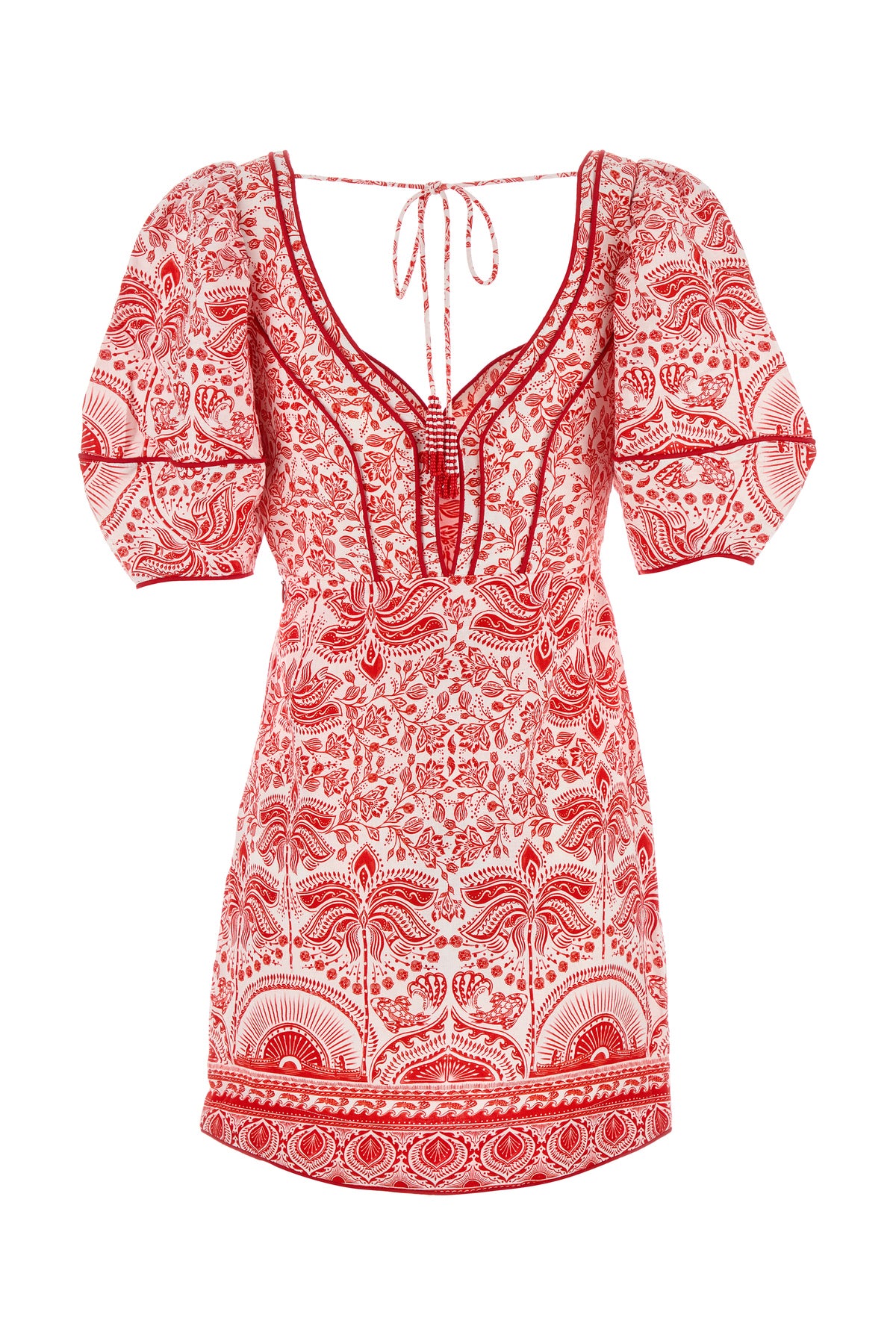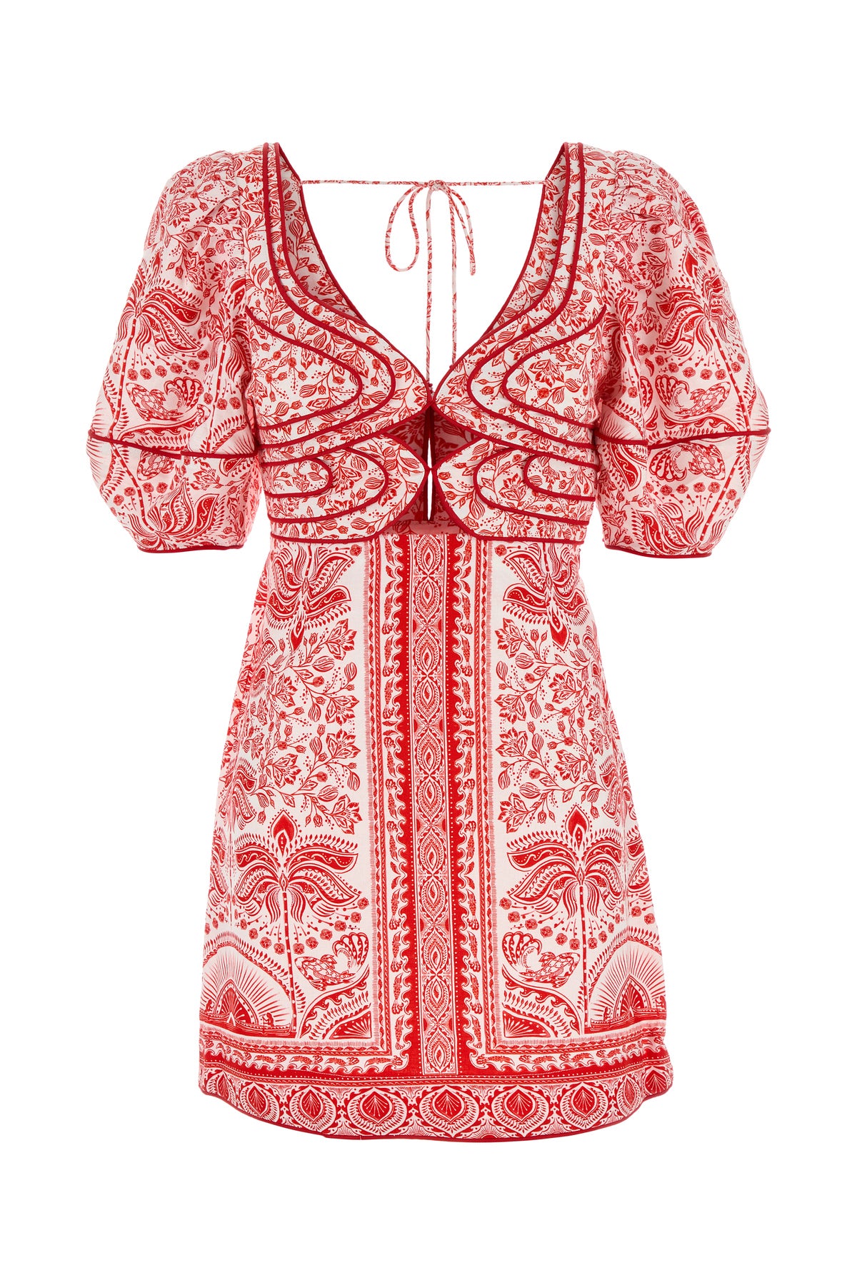 Mini abito realizzato in misto lino caratterizzato da ricamo River Red su tutta la superficie.