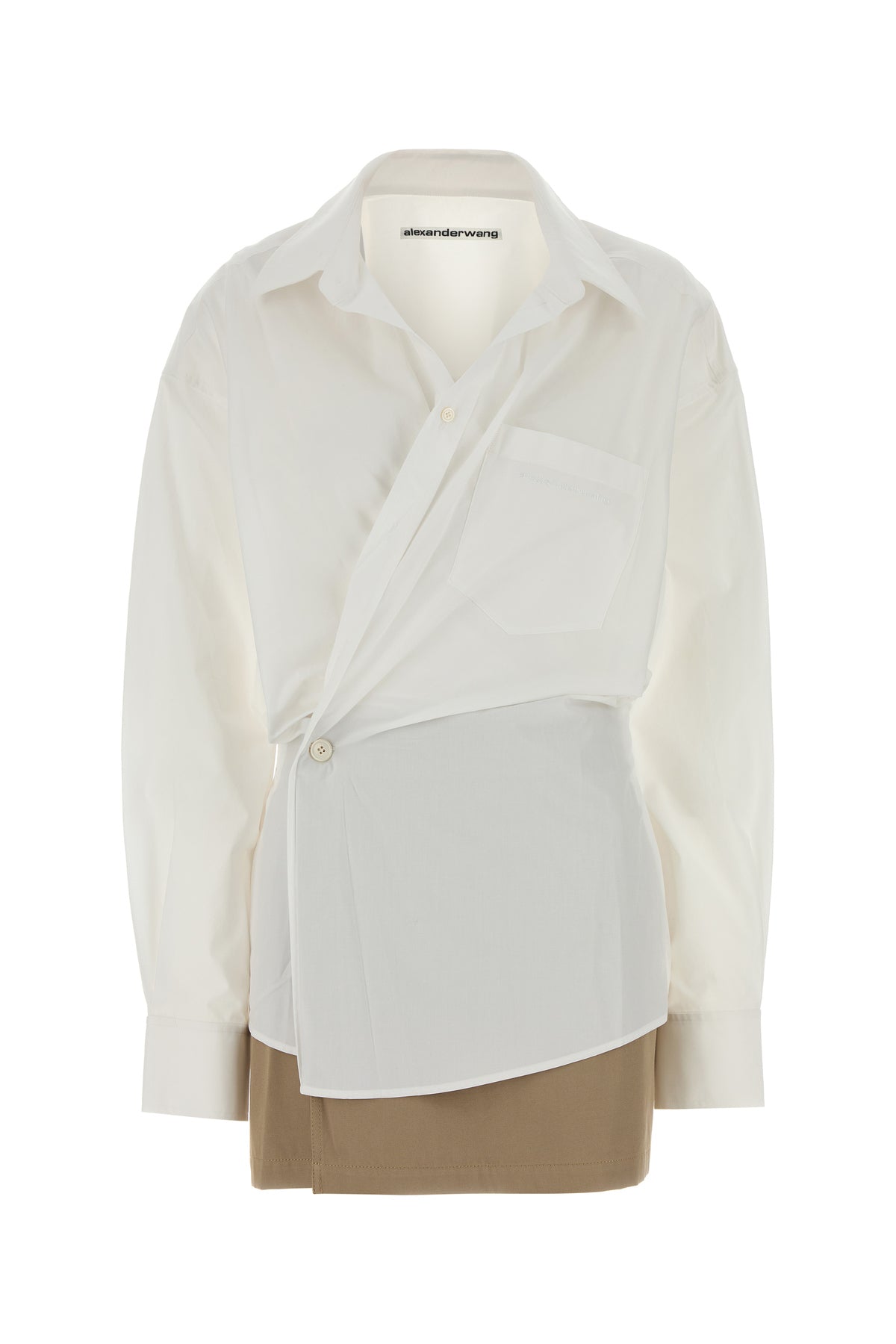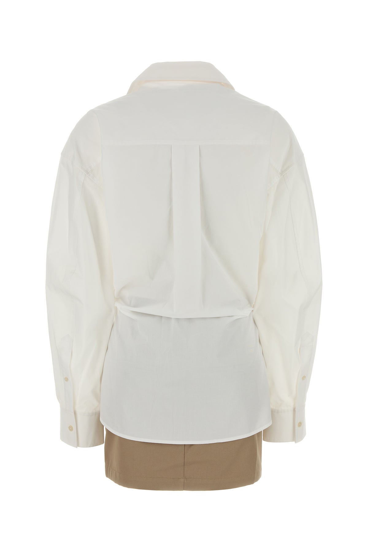 Mini abito realizzato in popeline di puro cotone con inserto in twill a contrasto sul fondo caratterizzato da logo ricamato tonale sul petto.