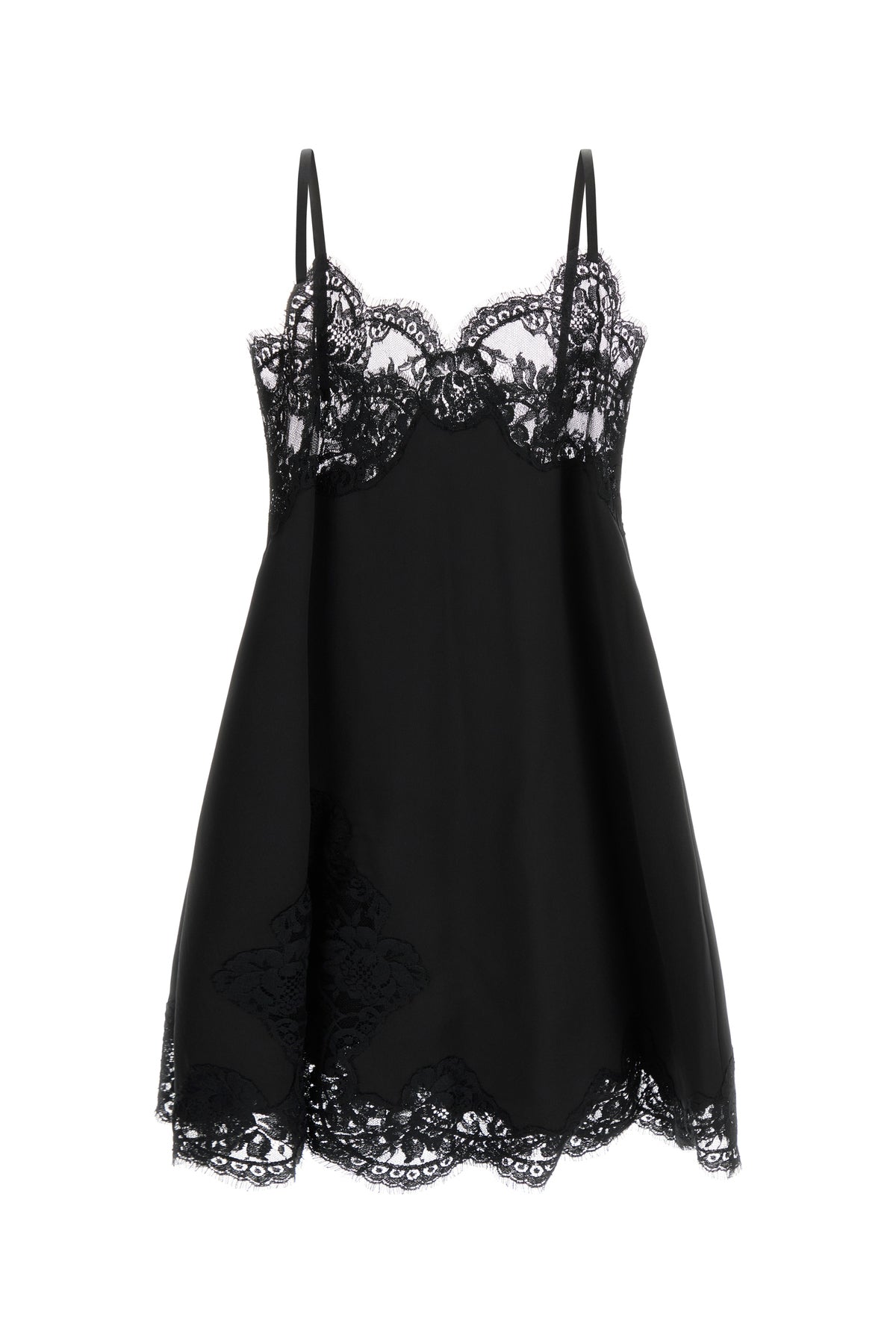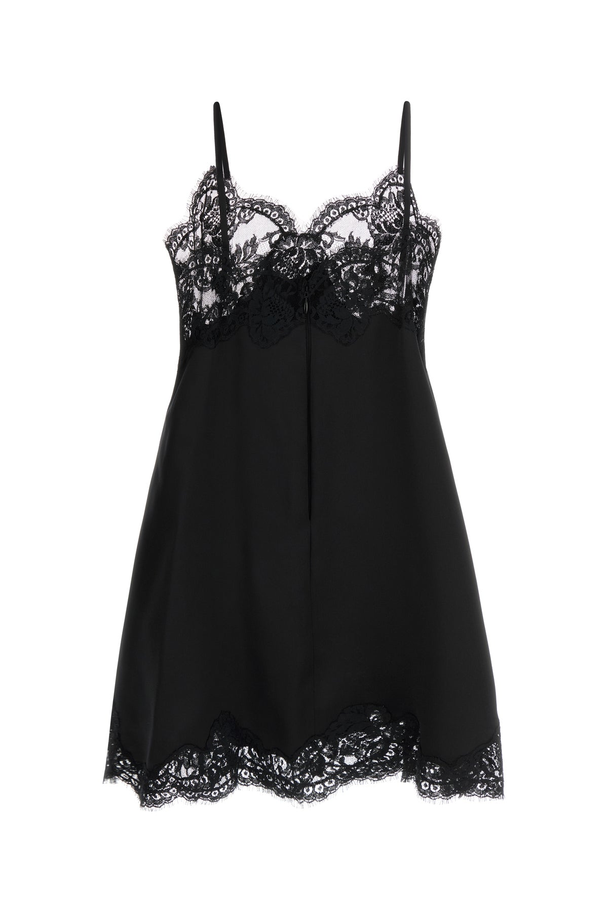 Mini abito realizzato in raso con inserti in pizzo sulla parte superiore e sul fondo.