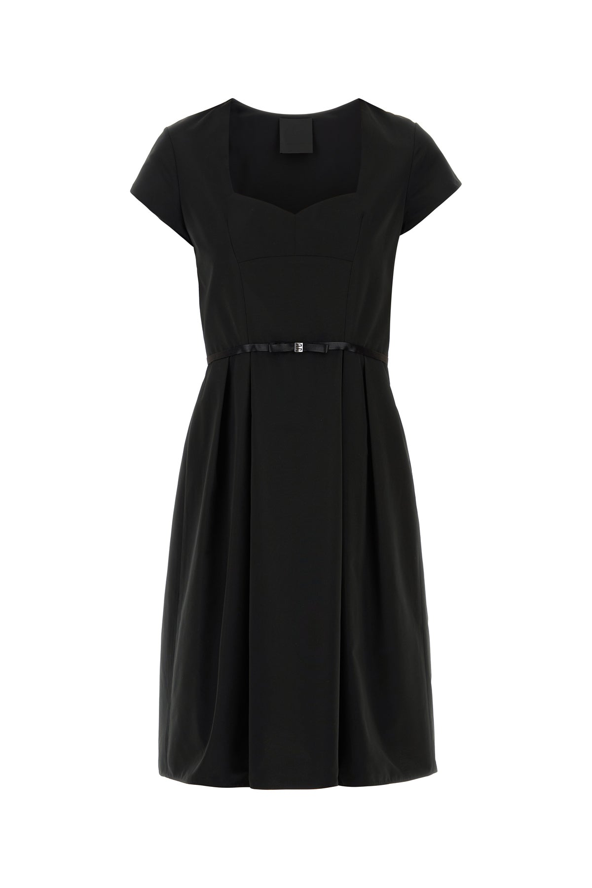 Mini abito realizzato in taffetà arricchito da nastro decorativo in raso tonale con fiocco 4G in vita.