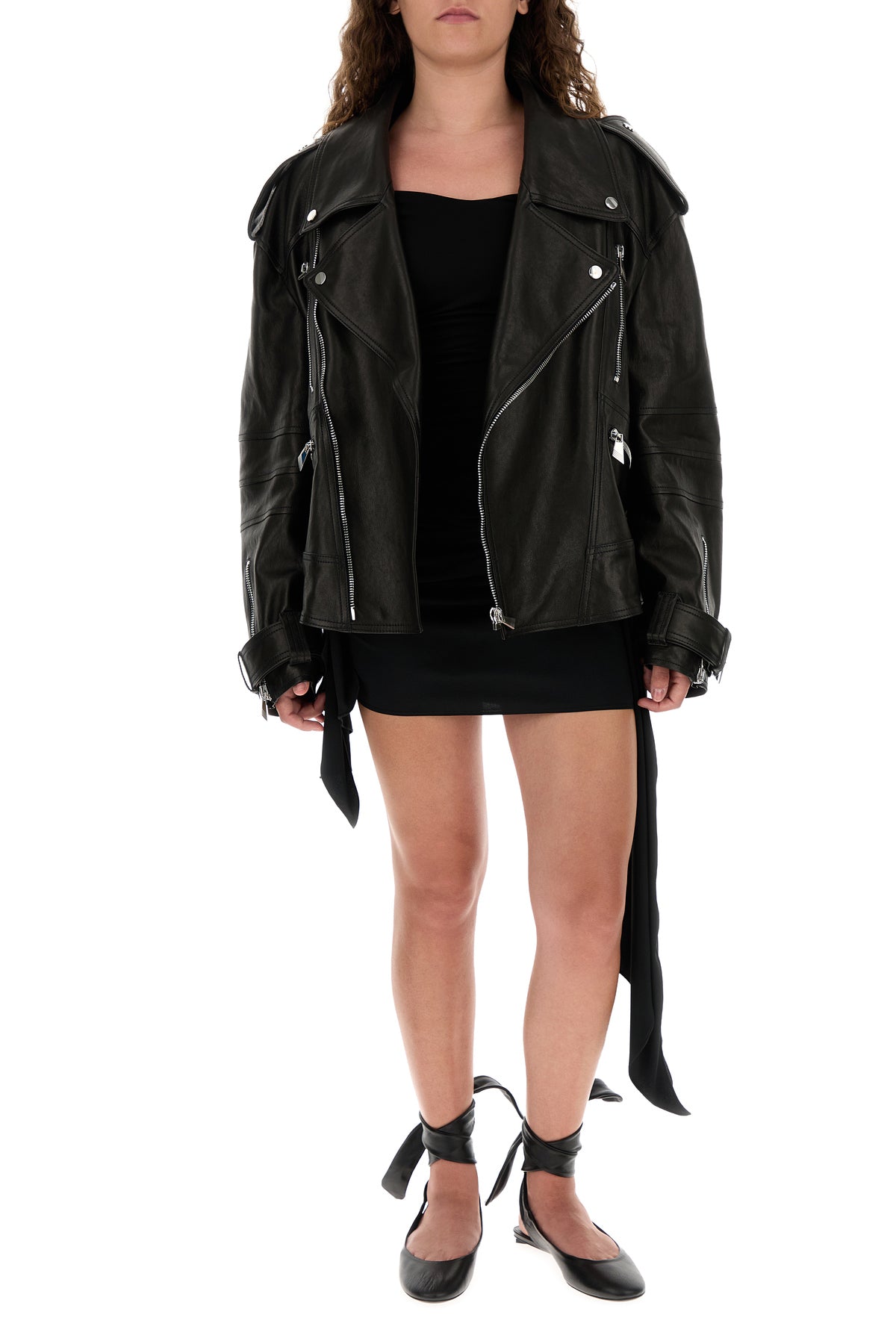 Minigonna drappeggiata realizzata in crepe arricchita da etichetta logata tonale sul retro.
