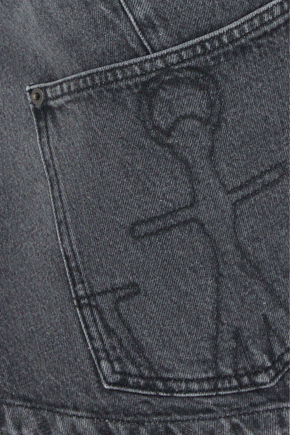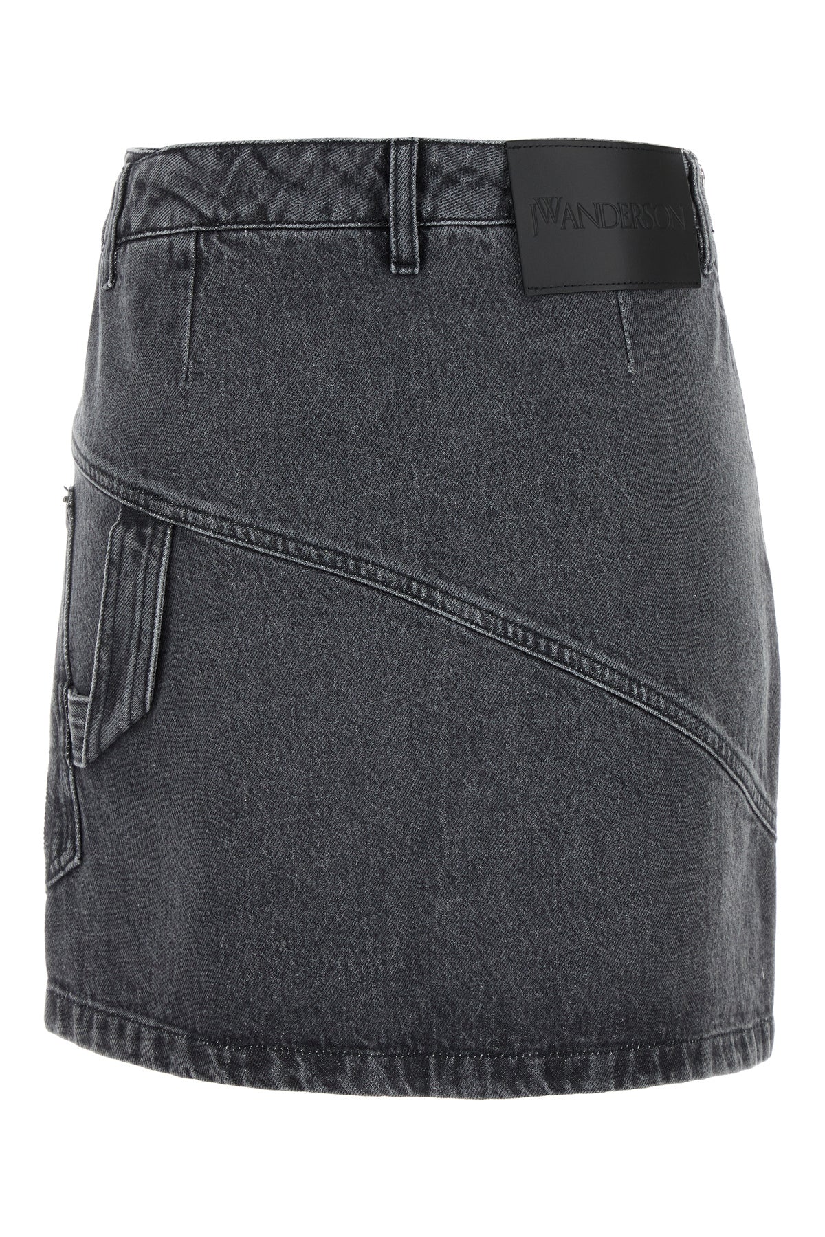 Minigonna asimmetrica realizzata in denim di puro cotone caratterizzata da ricamo Anchor a contrasto sulla parte frontale arricchita da etichetta logata a contrasto sul retro.
