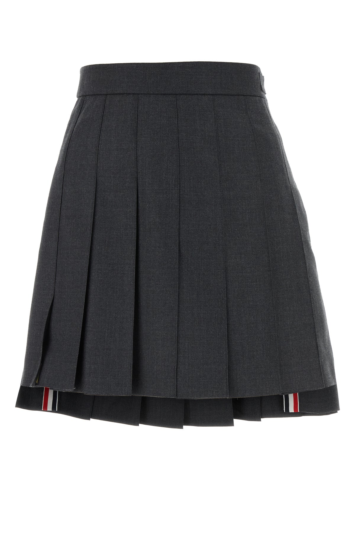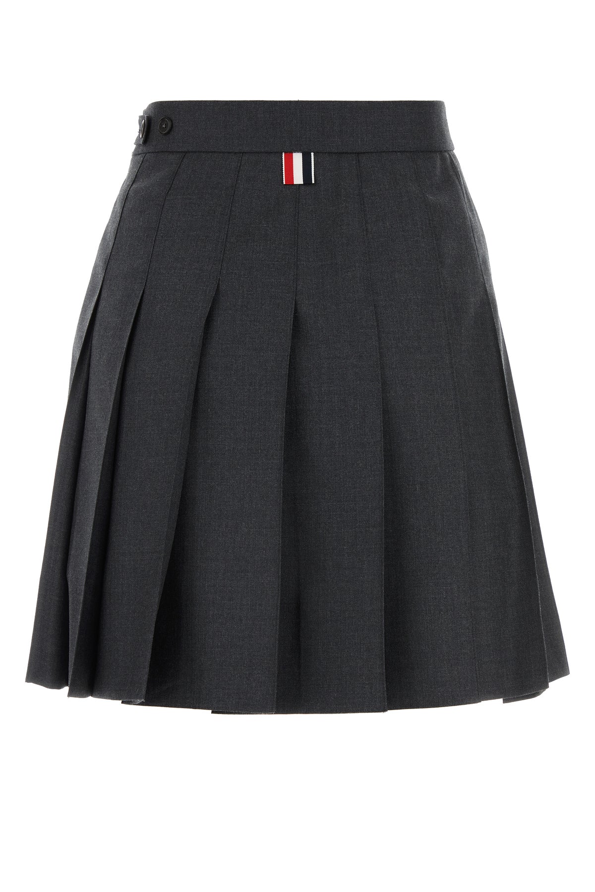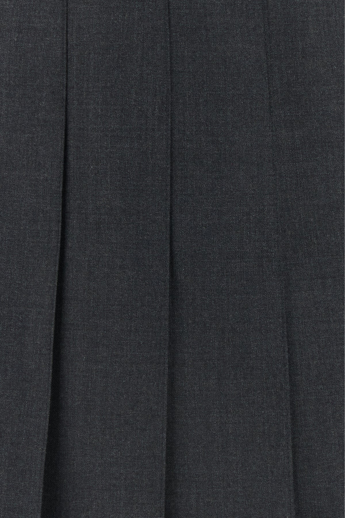 Minigonna plissettata realizzata in pura lana caratterizzata da retro più lungo arricchita da iconica etichetta tricolore sul retro.
