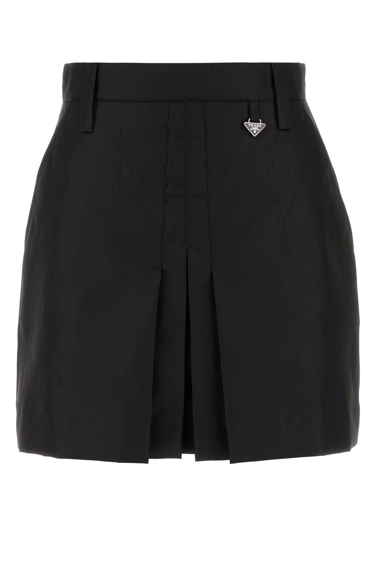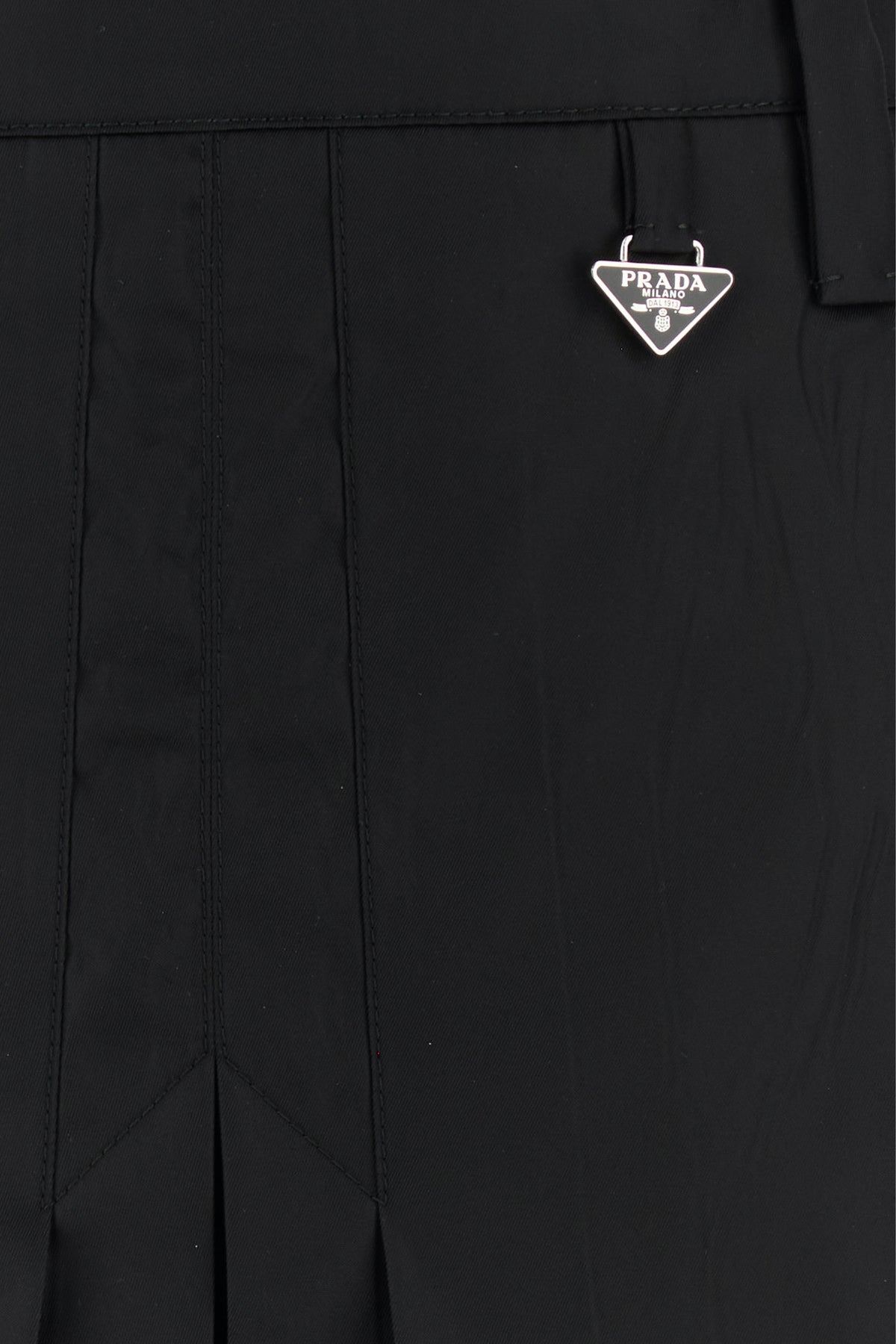 Minigonna realizzata in Re-Nylon arricchita da iconico triangolo logato in metallo sulla parte superiore.