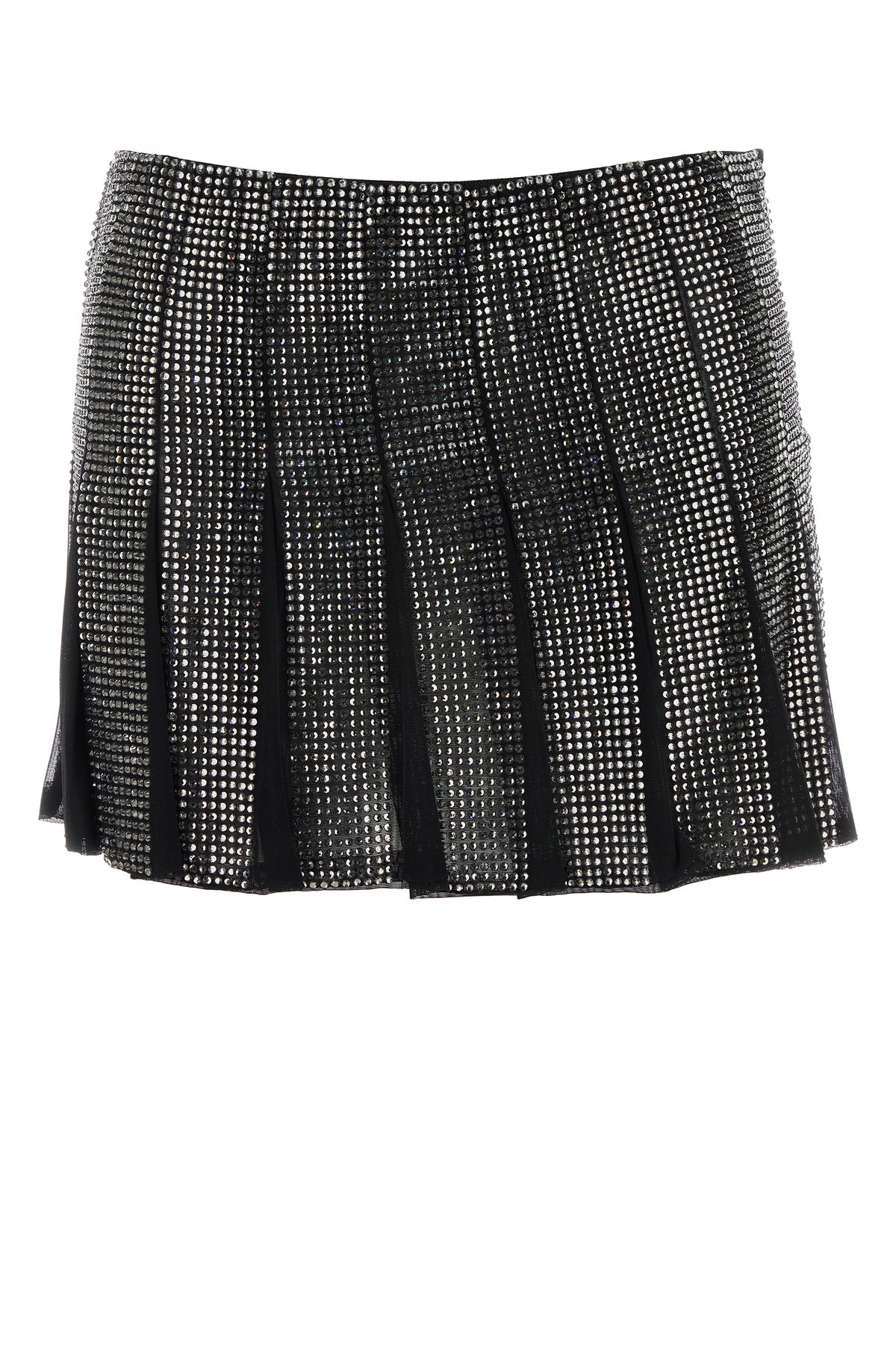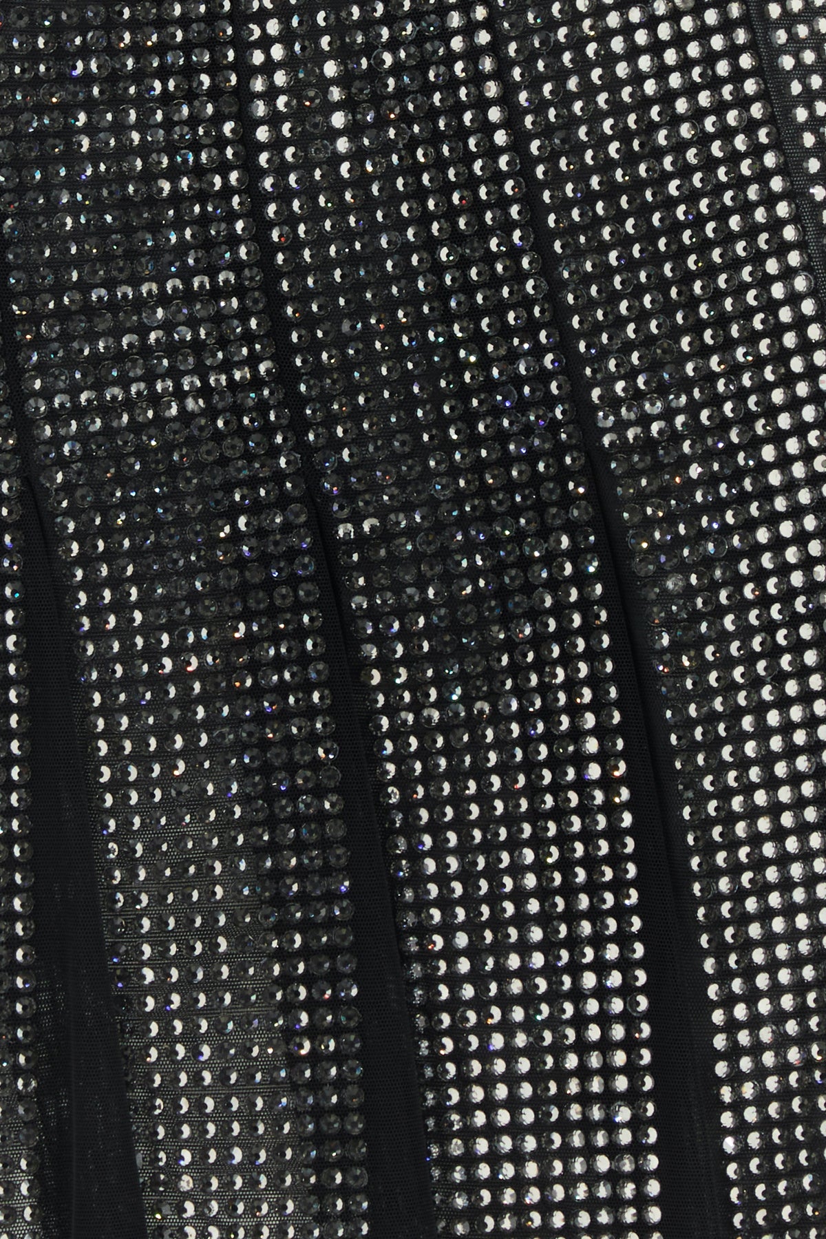 Minigonna plissettata realizzata in tulle stretch interamente ricoperta di cristalli.