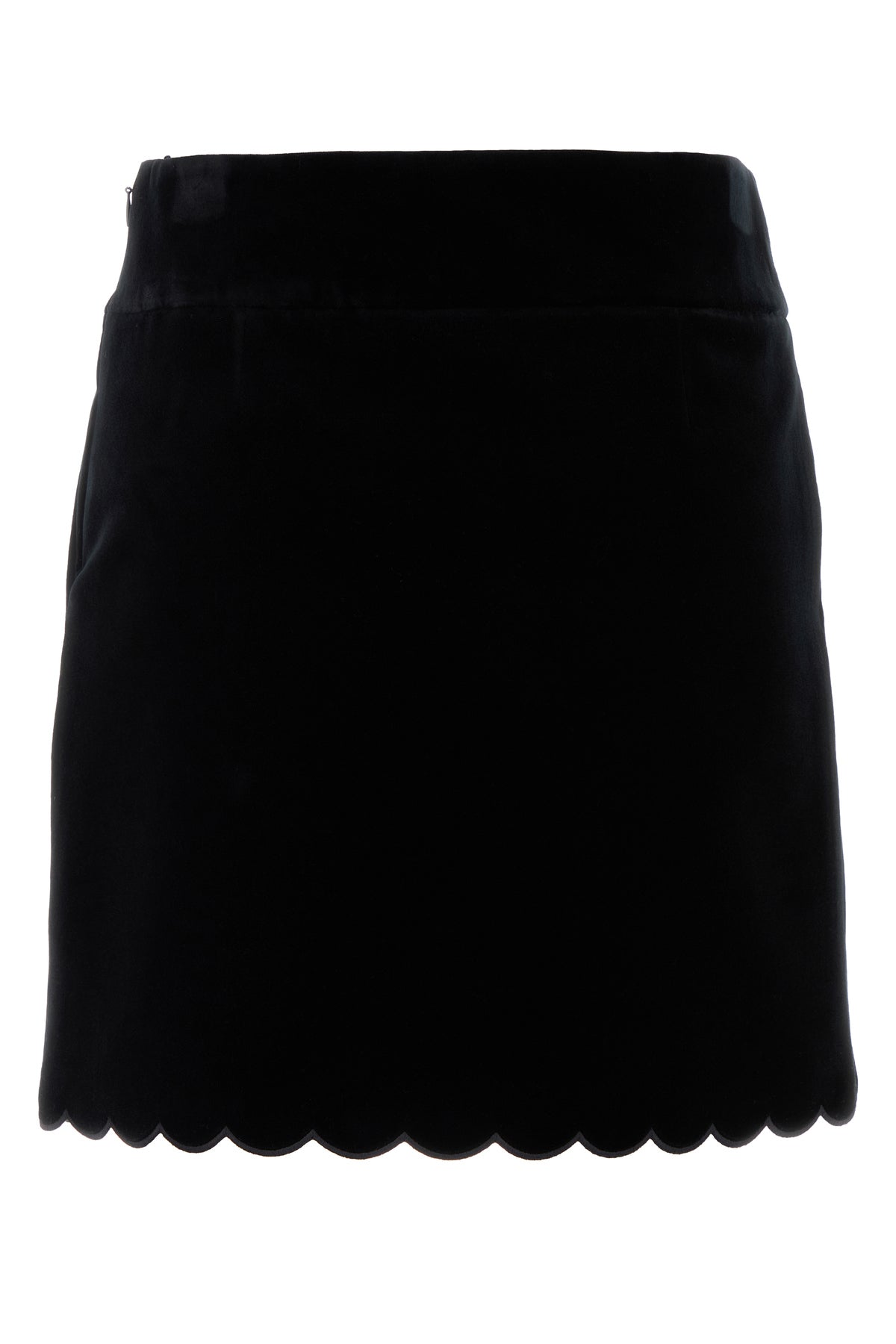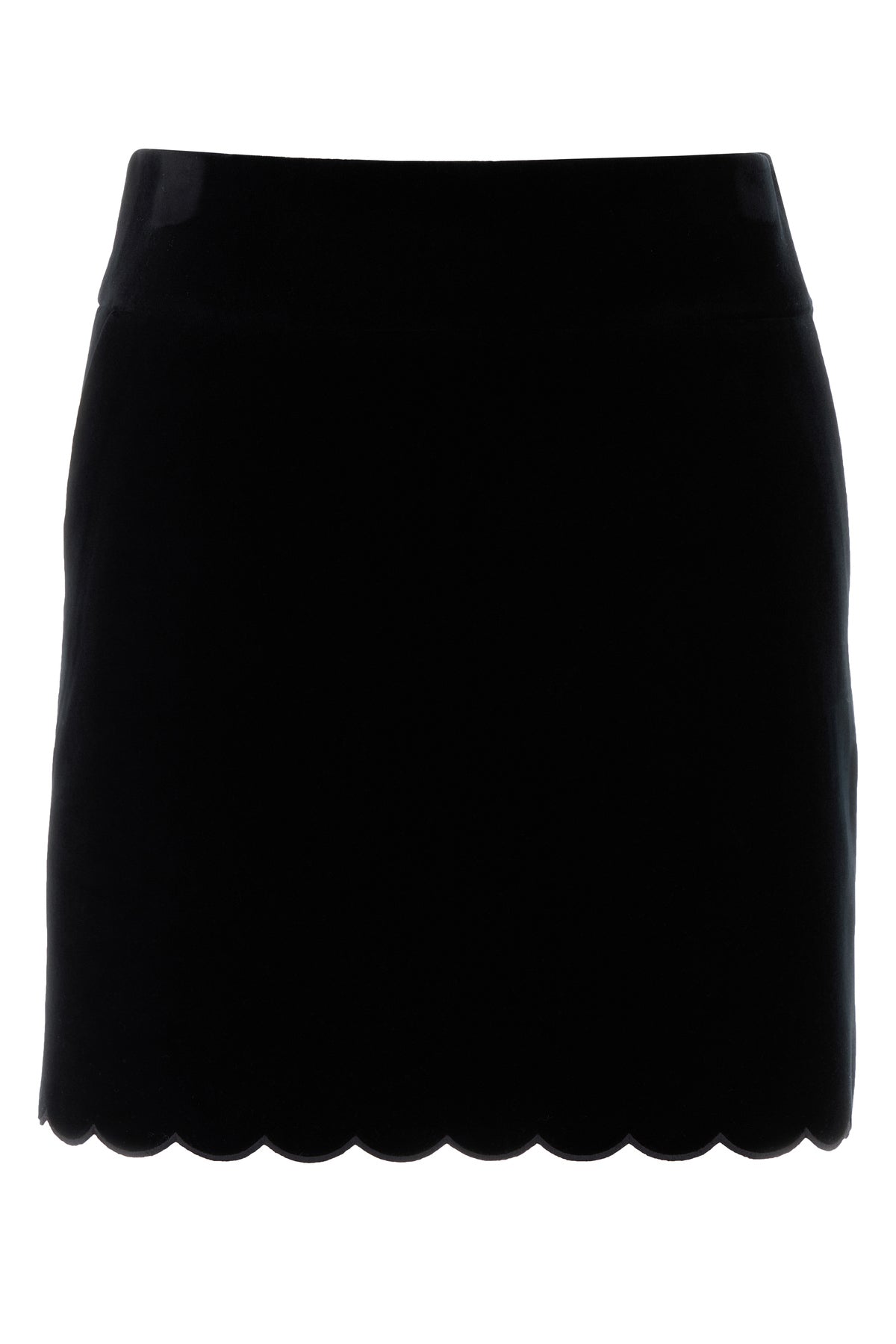 Minigonna realizzata in velluto di puro cotone caratterizzata da fondo ondulato.