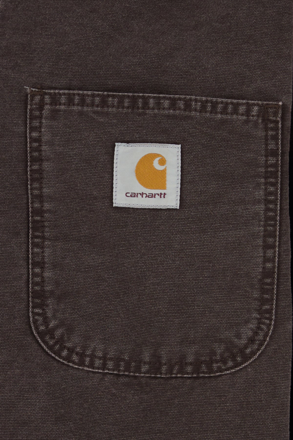 Giubbino realizzato in denim di puro cotone slavato arricchito da etichetta logata a contrasto sul petto.