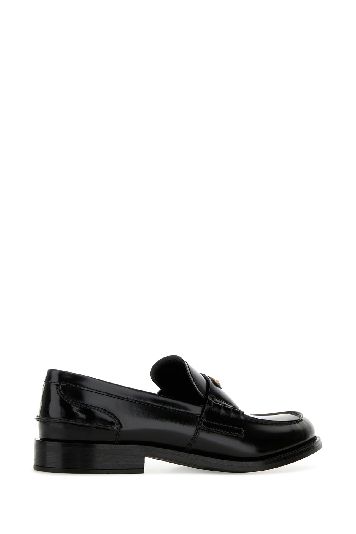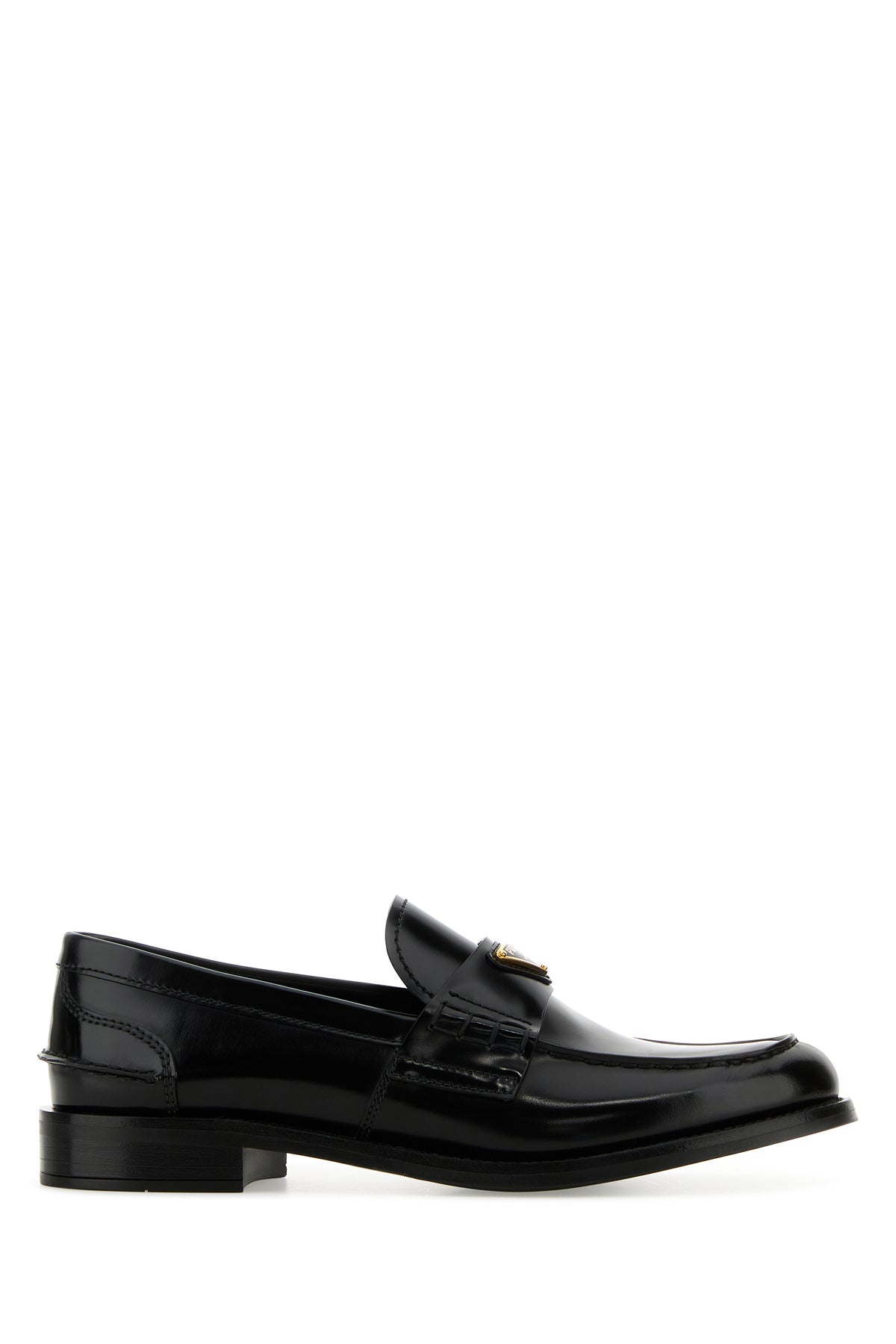 Mocassini realizzati in pelle liscia arricchiti da iconico triangolo logato sulla mascherina.