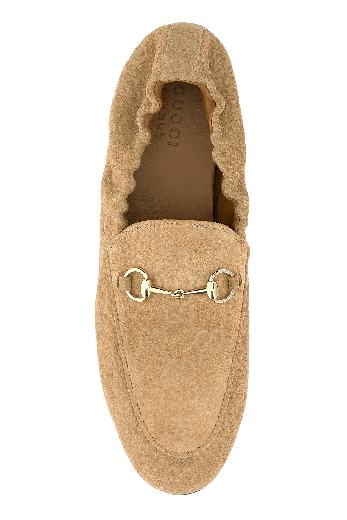 Mocassini realizzati in pelle scamosciata caratterizzati da motivo GG impresso su tutta la superficie arricchiti da dettaglio metallico Morsetto sul collo del piede.
