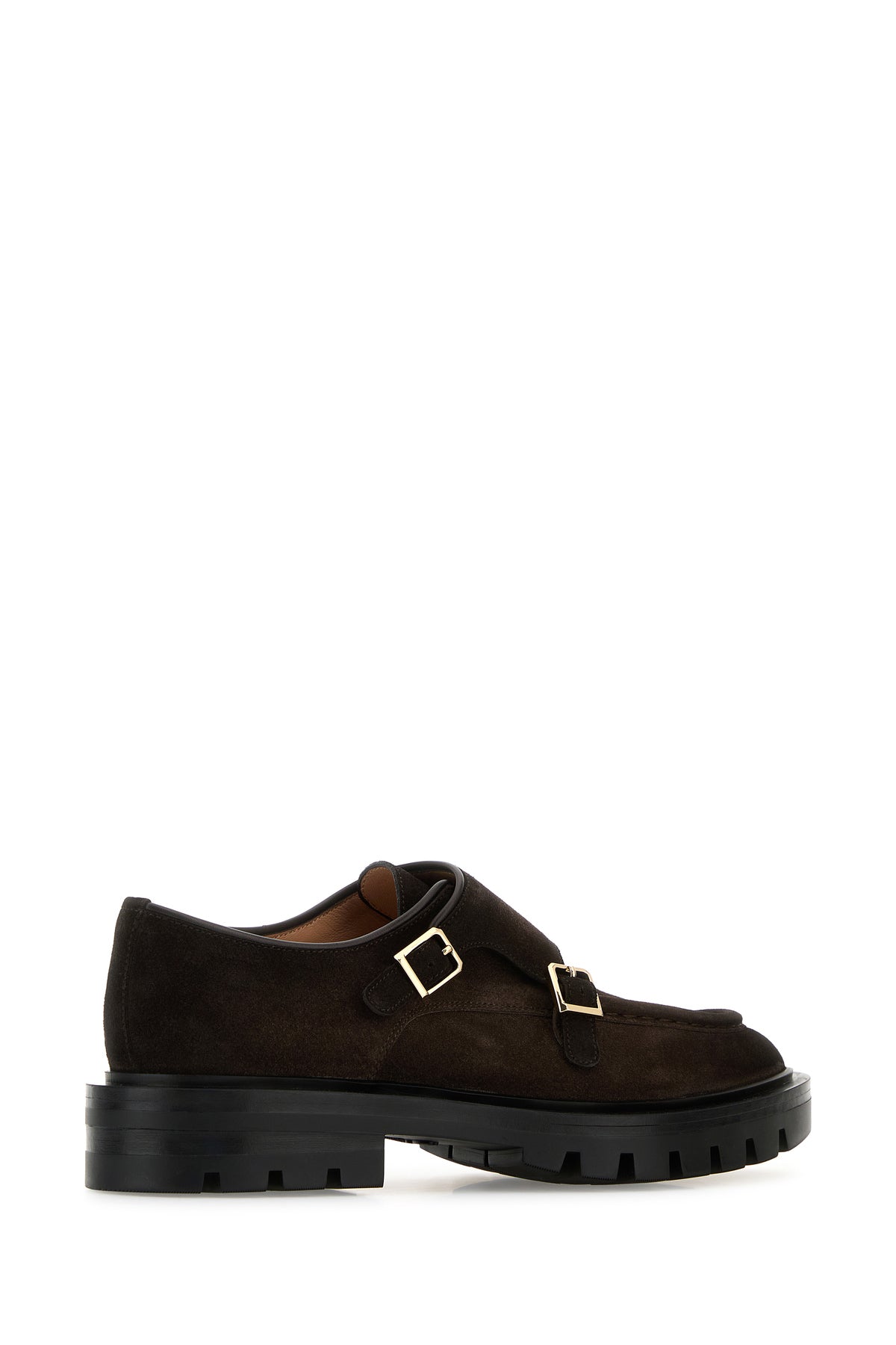 Mocassini realizzati in pelle scamosciata caratterizzati da cinturino regolabili sul collo del piede.