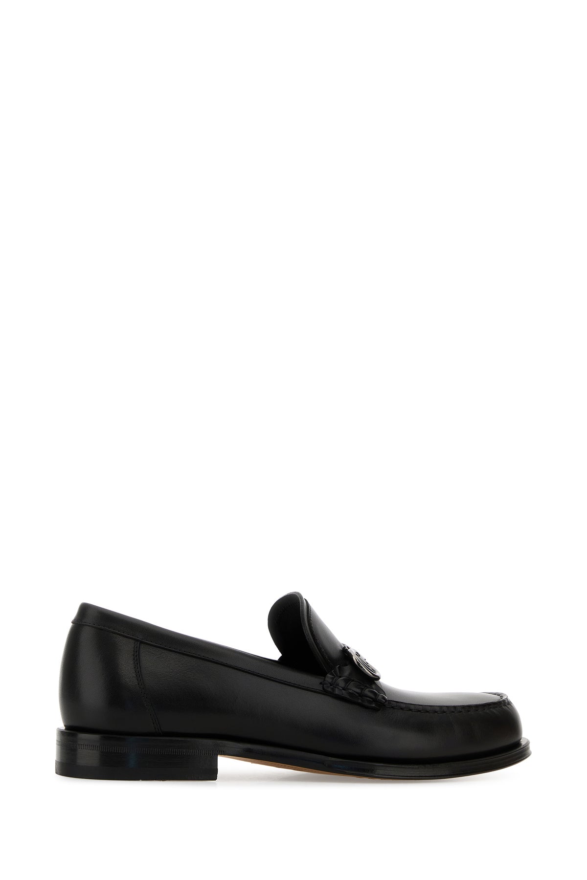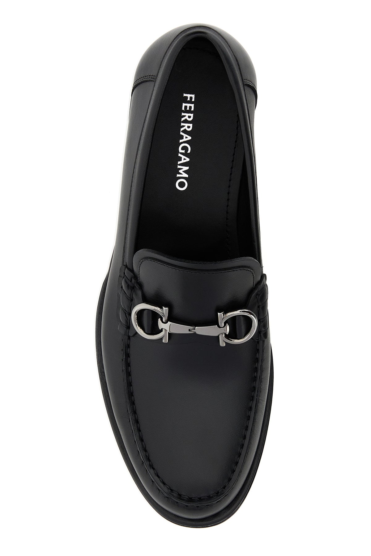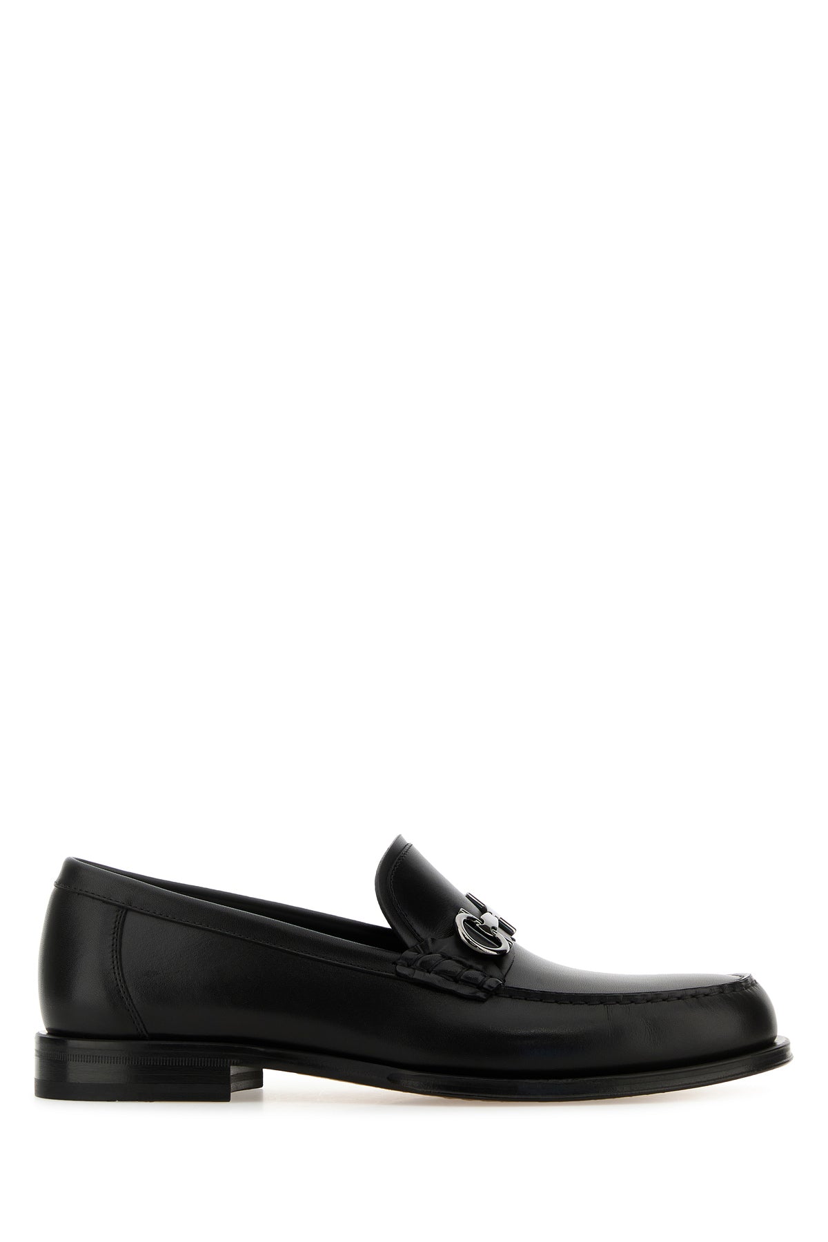 Mocassini realizzati in pelle di vitello liscia arricchiti da dettaglio metallico Gancini sul collo del piede.