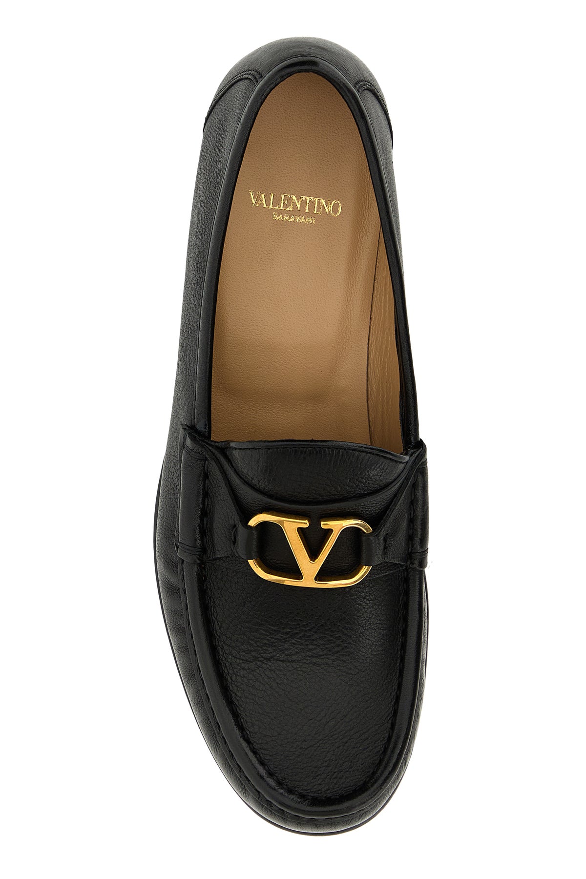 Mocassini realizzati in pelle di vitello martellata arricchiti da dettaglio metallico VLogo sulla mascherina.