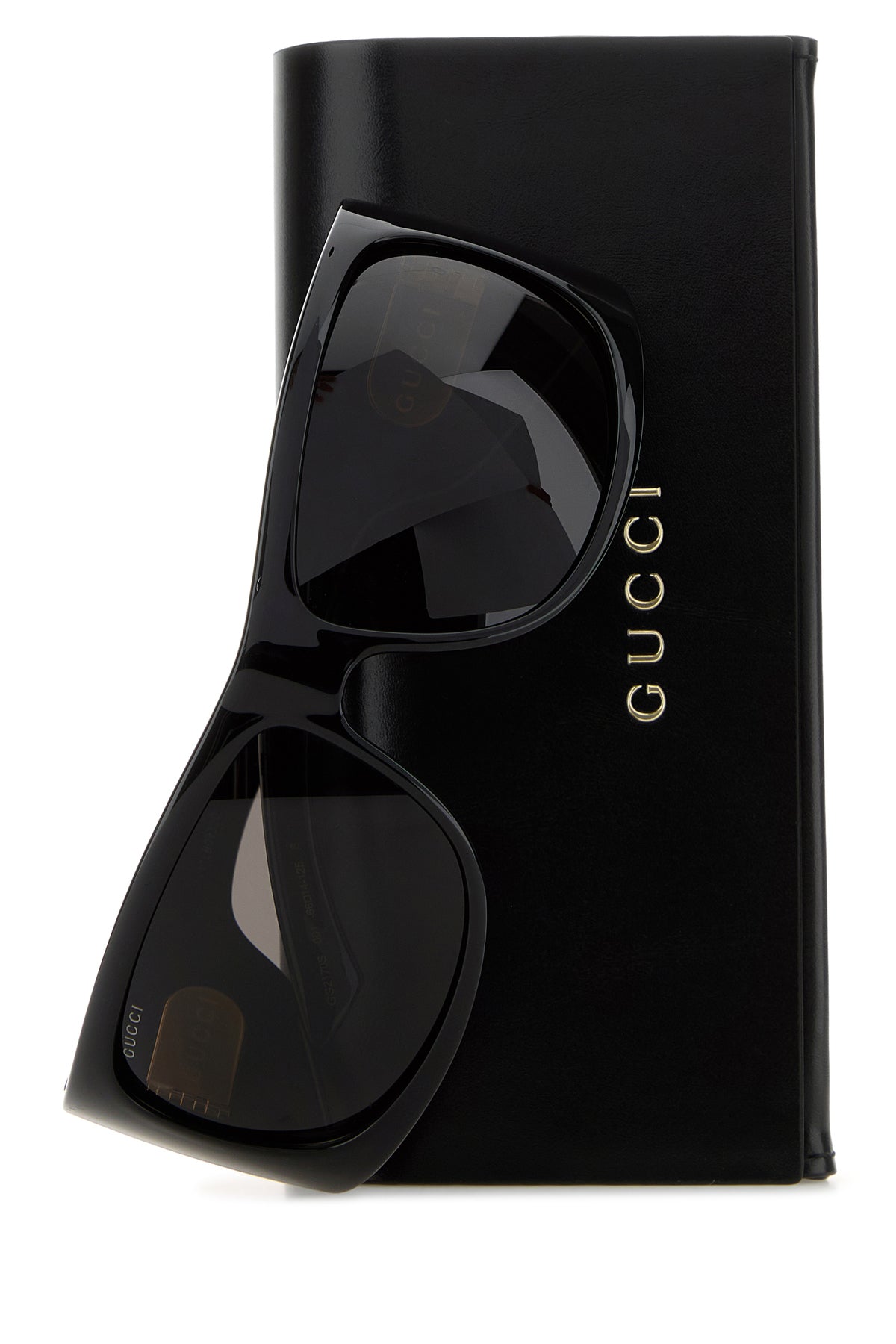 Occhiali da sole realizzati in acetato caratterizzati da motivo Gucci sulla lente arricchiti da dettaglio GG in metallo sulle bacchette.