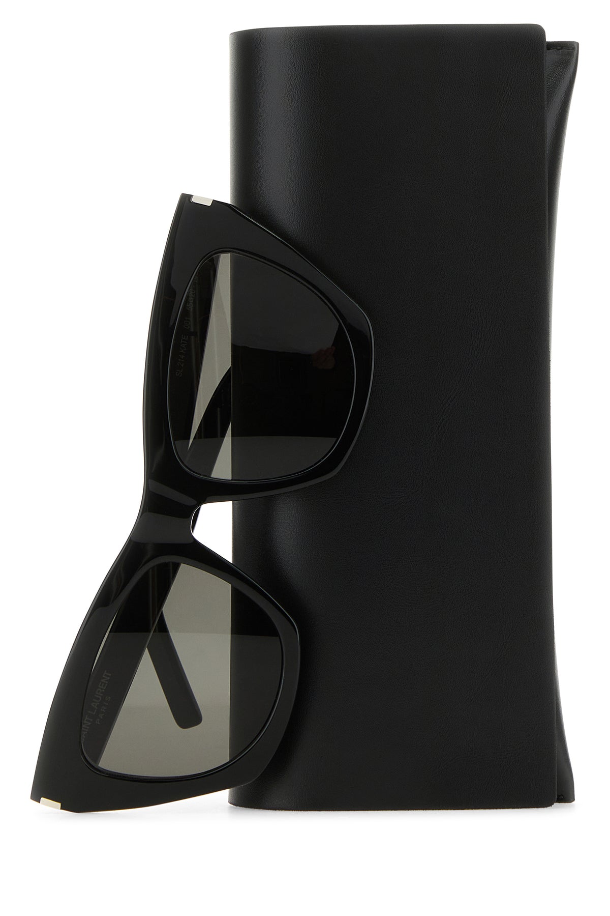 Sunglasses realized in acetate characterized by embossed logo on the arms enriched by metal inserts.