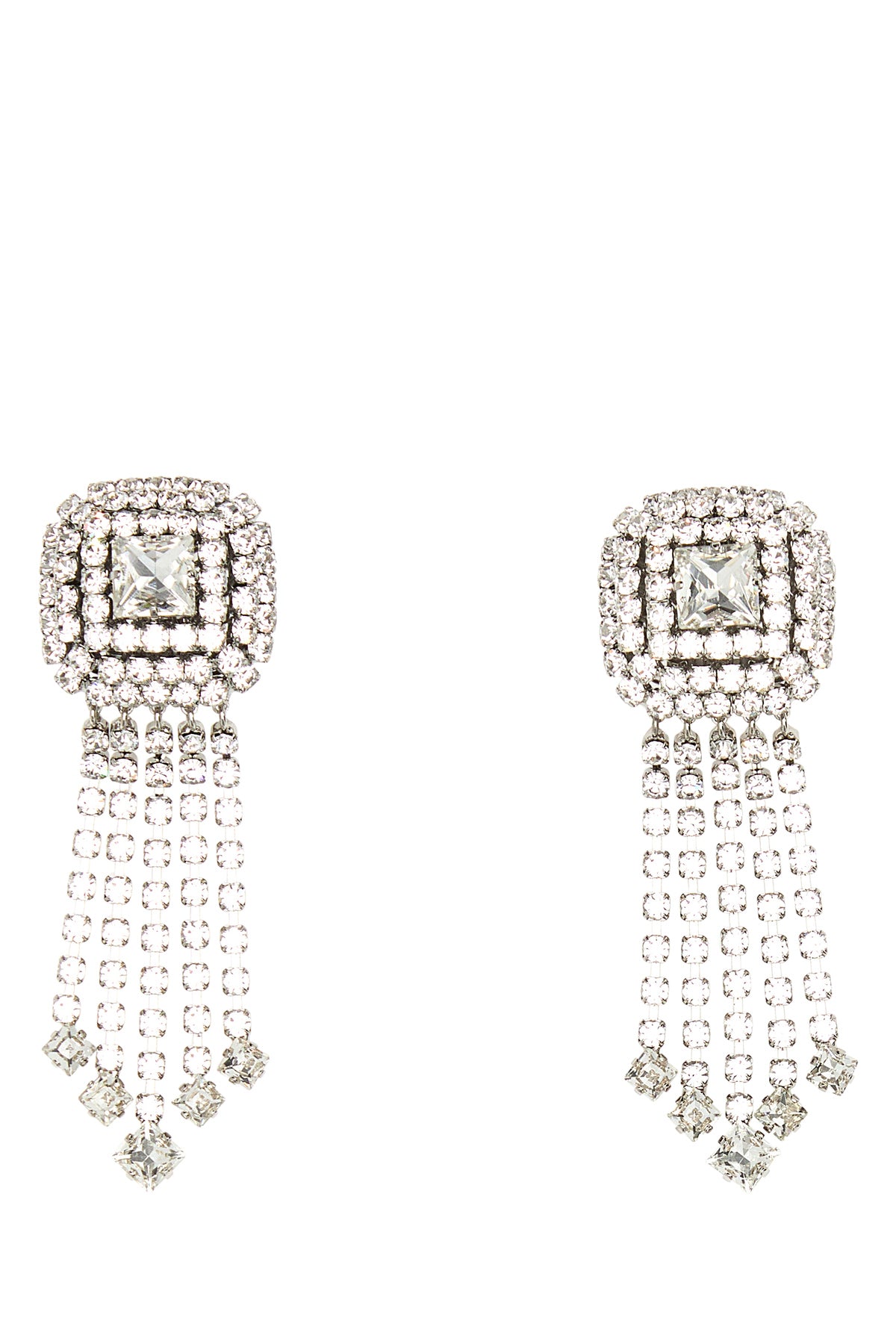 Orecchini pendenti realizzati in metallo placcato color argento arricchiti da cristalli.