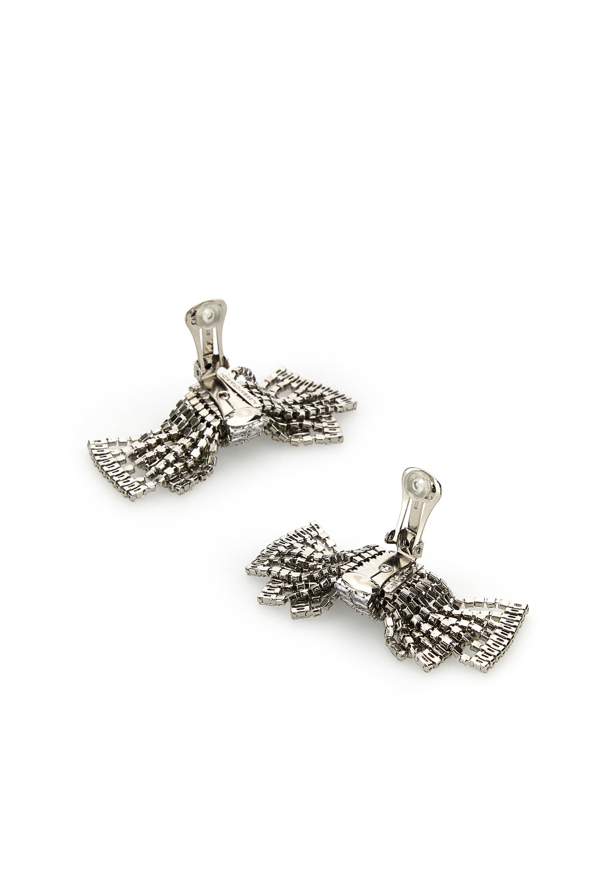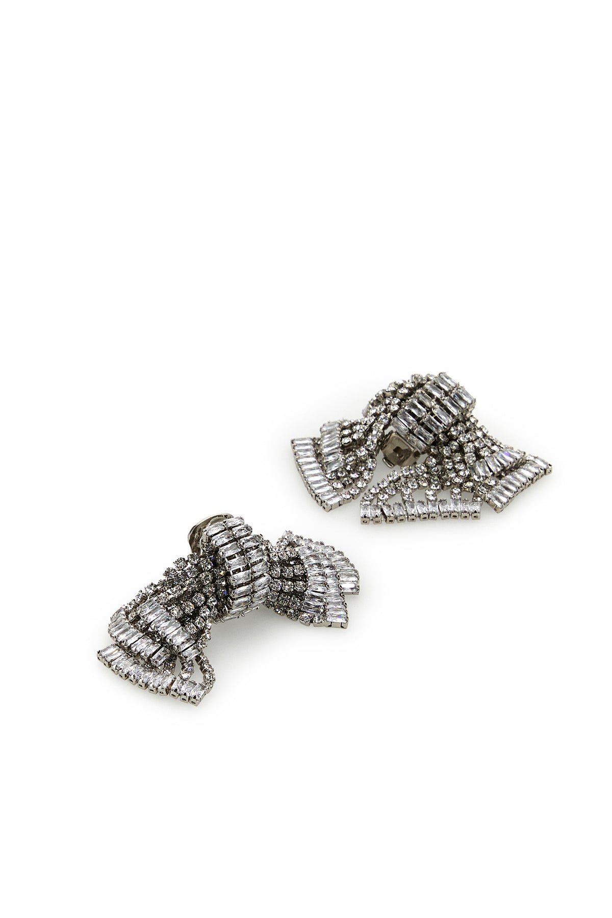 Orecchini realizzati in metallo placcato color argento arricchiti da cristalli.