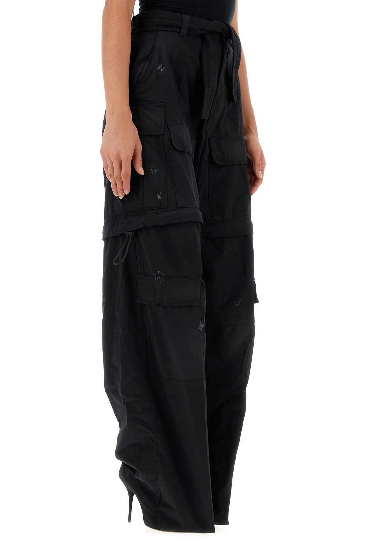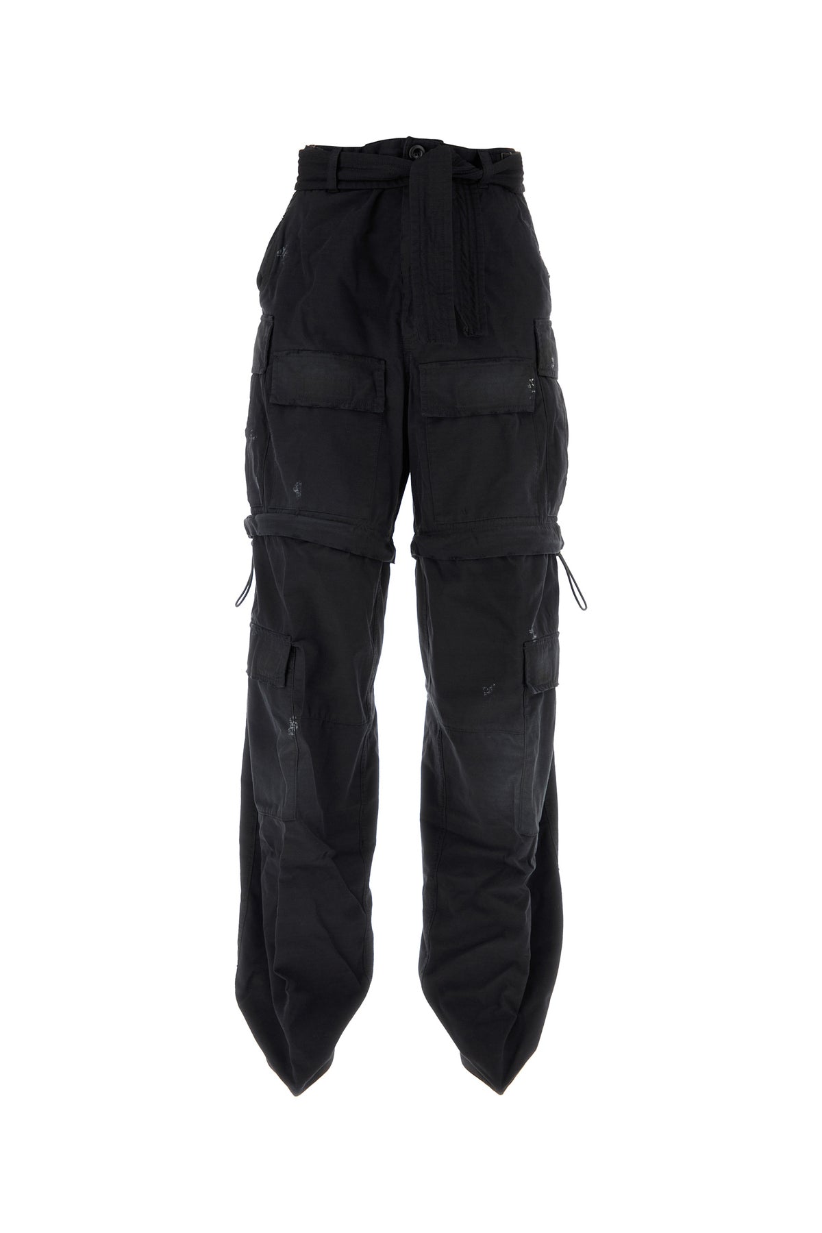 Pantaboots realizzati in puro cotone ripstop slavato con sporcature intenzionali arricchiti da cintura amovibile da annodare in vita.