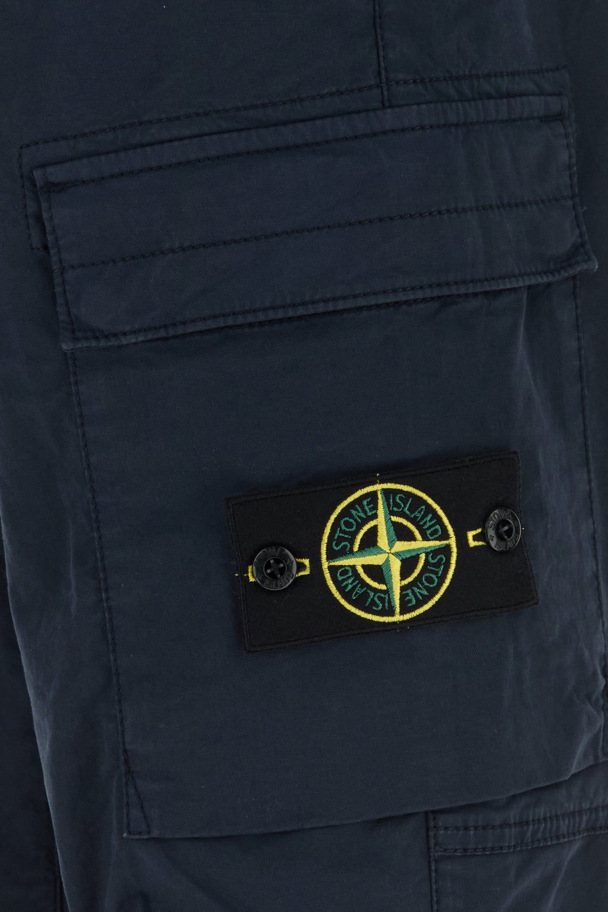 Pantalone cargo realizzato in cotone stretch arricchito da applicazione logata amovibile sul lato.
