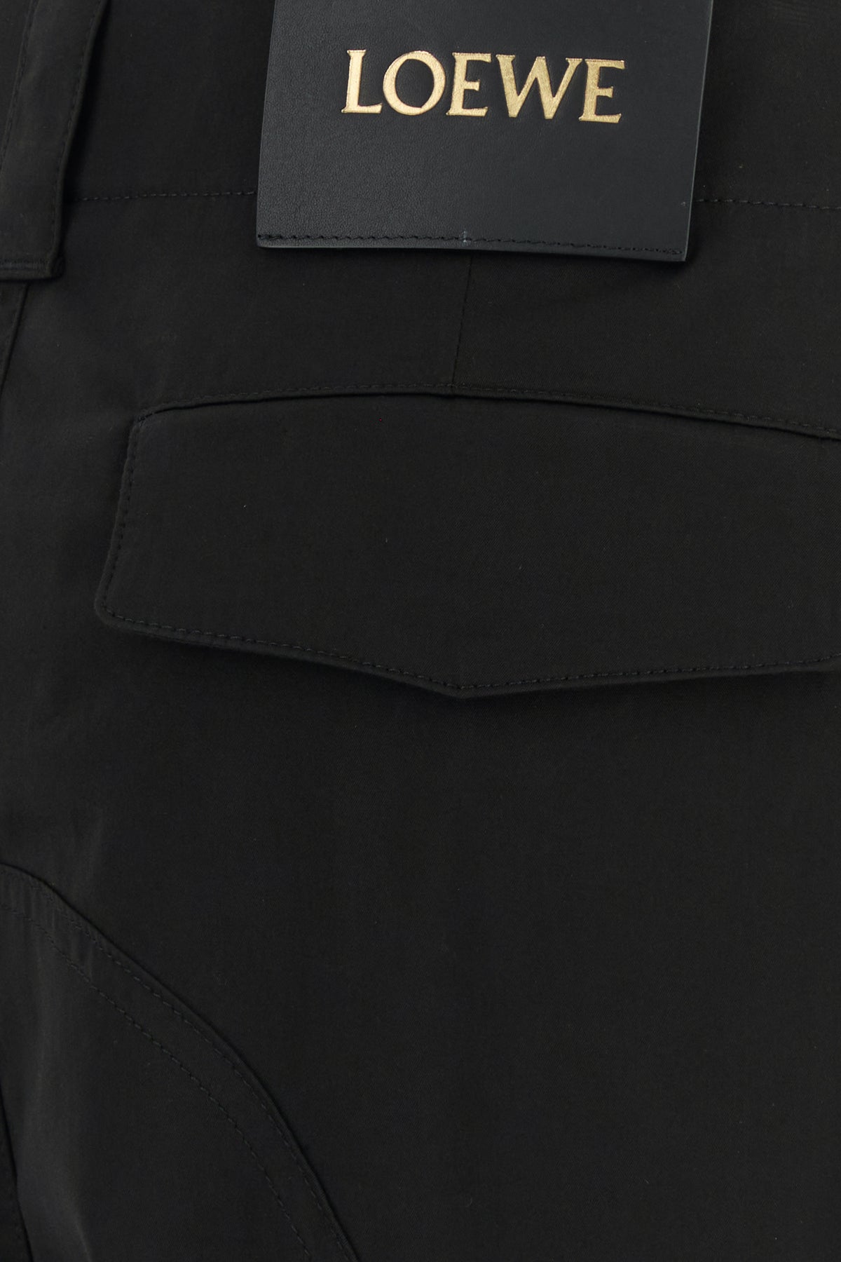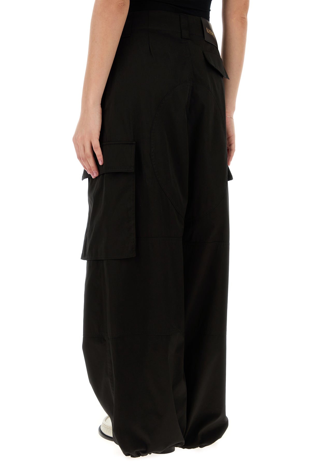 Pantalone cargo realizzato in gabardine di puro cotone arricchito da etichetta LOEWE in pelle tonale sul retro.