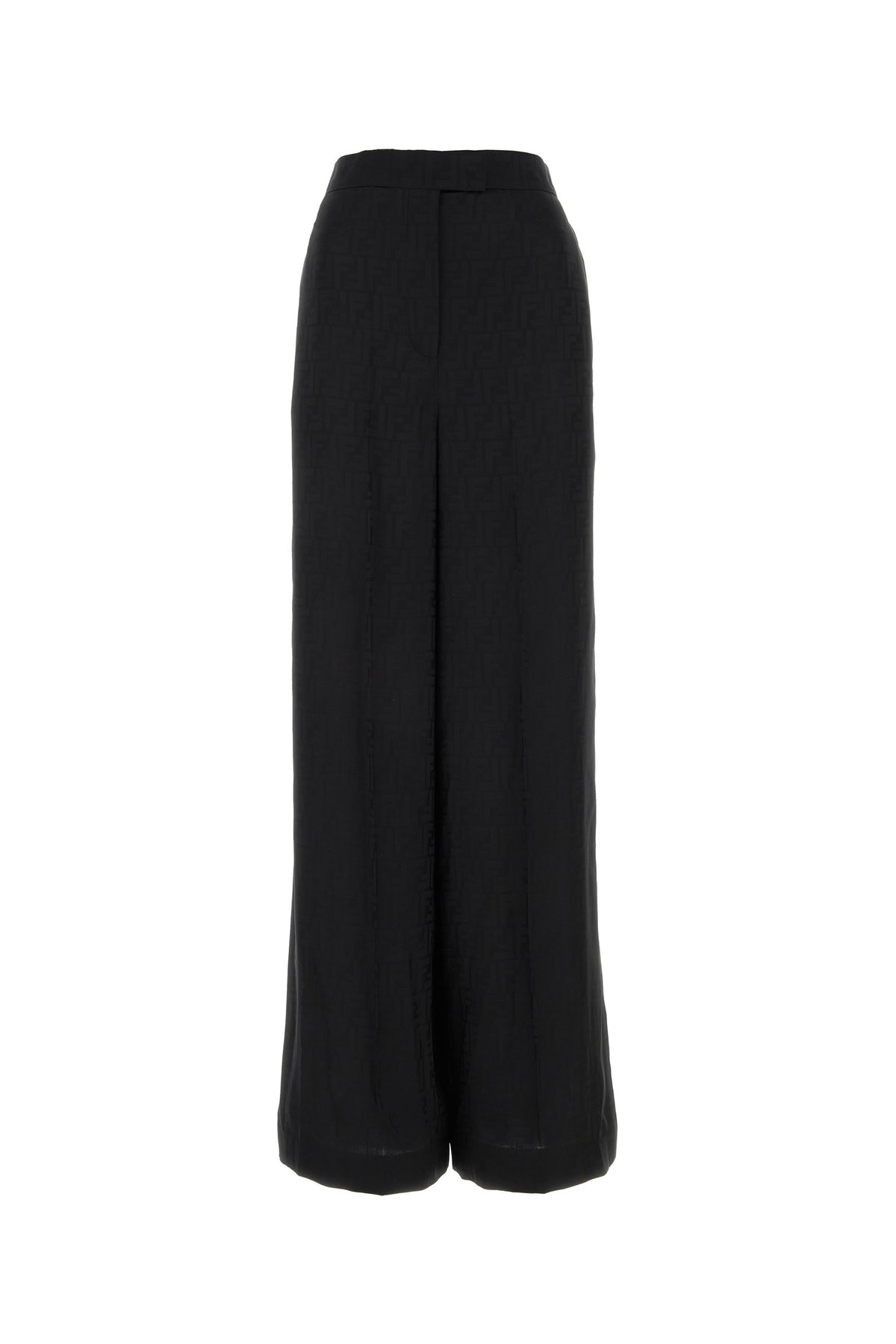 Pantalone dalla gamba ampia realizzato in raso di pura seta caratterizzato da ricamo a motivo FF su tutta la superficie.