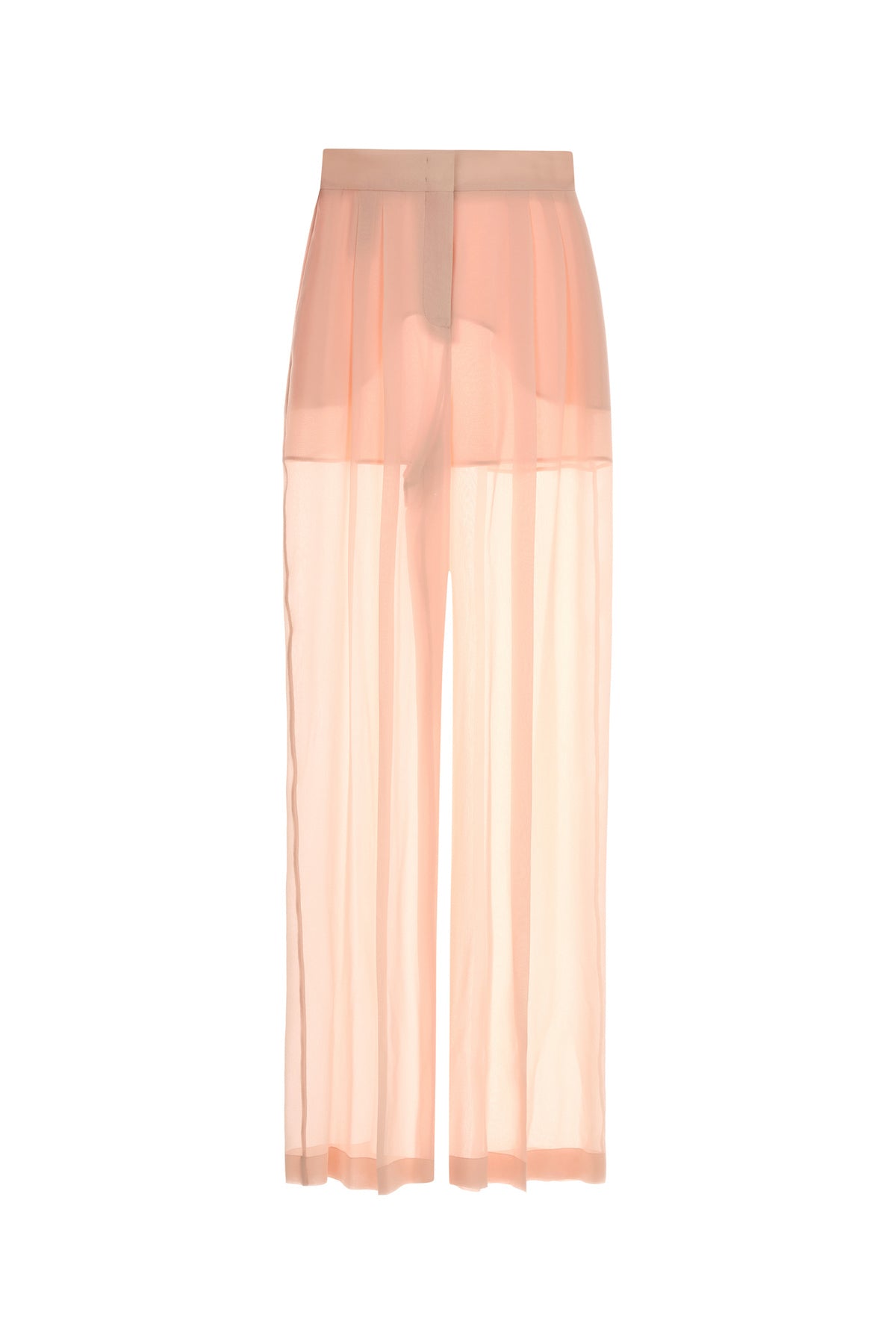 Pantalone dalla gamba ampia realizzata in pura seta caratterizzata ad pieghe centrali striate.
