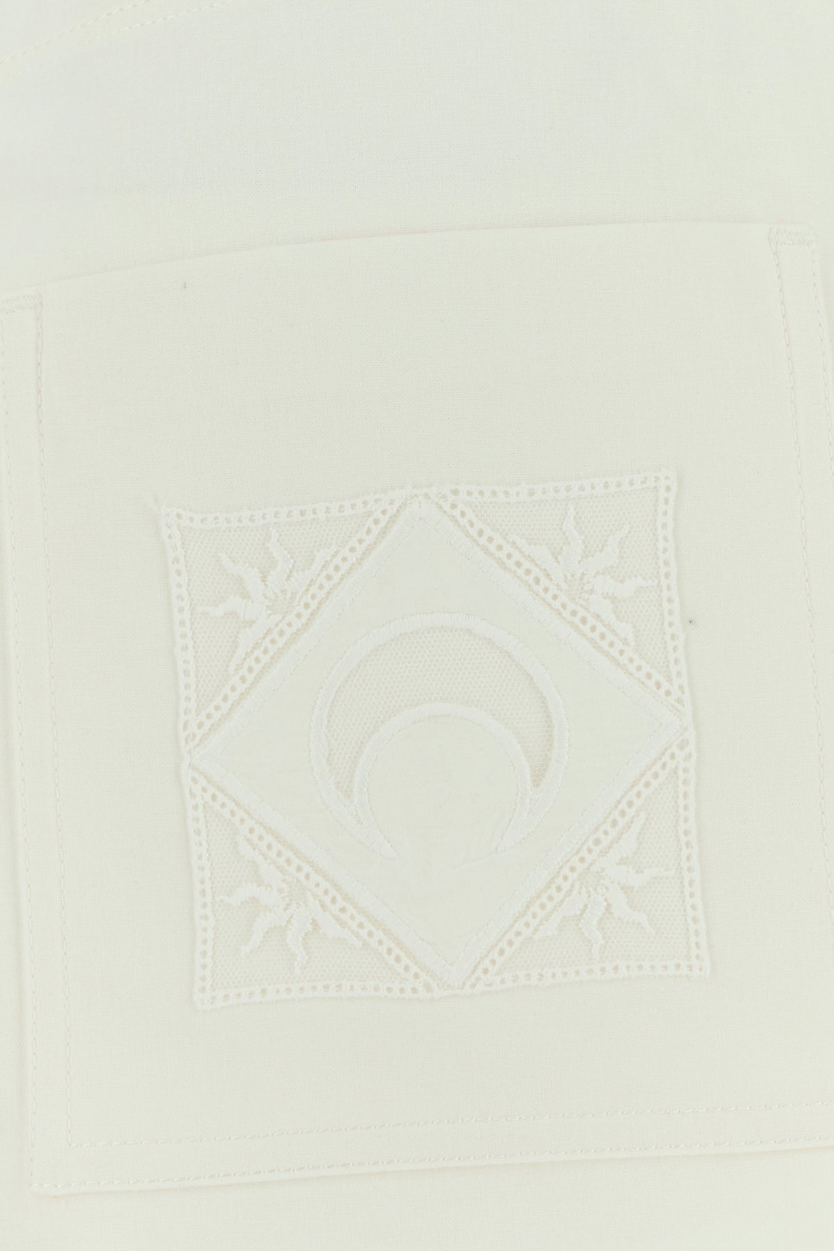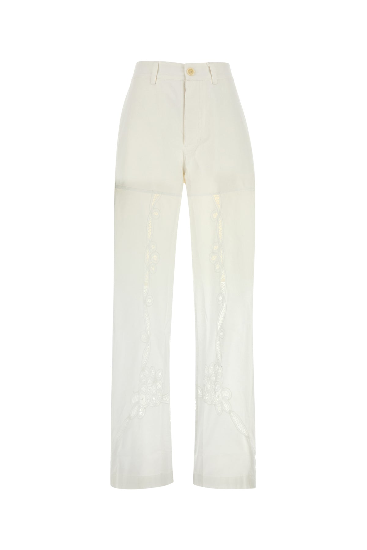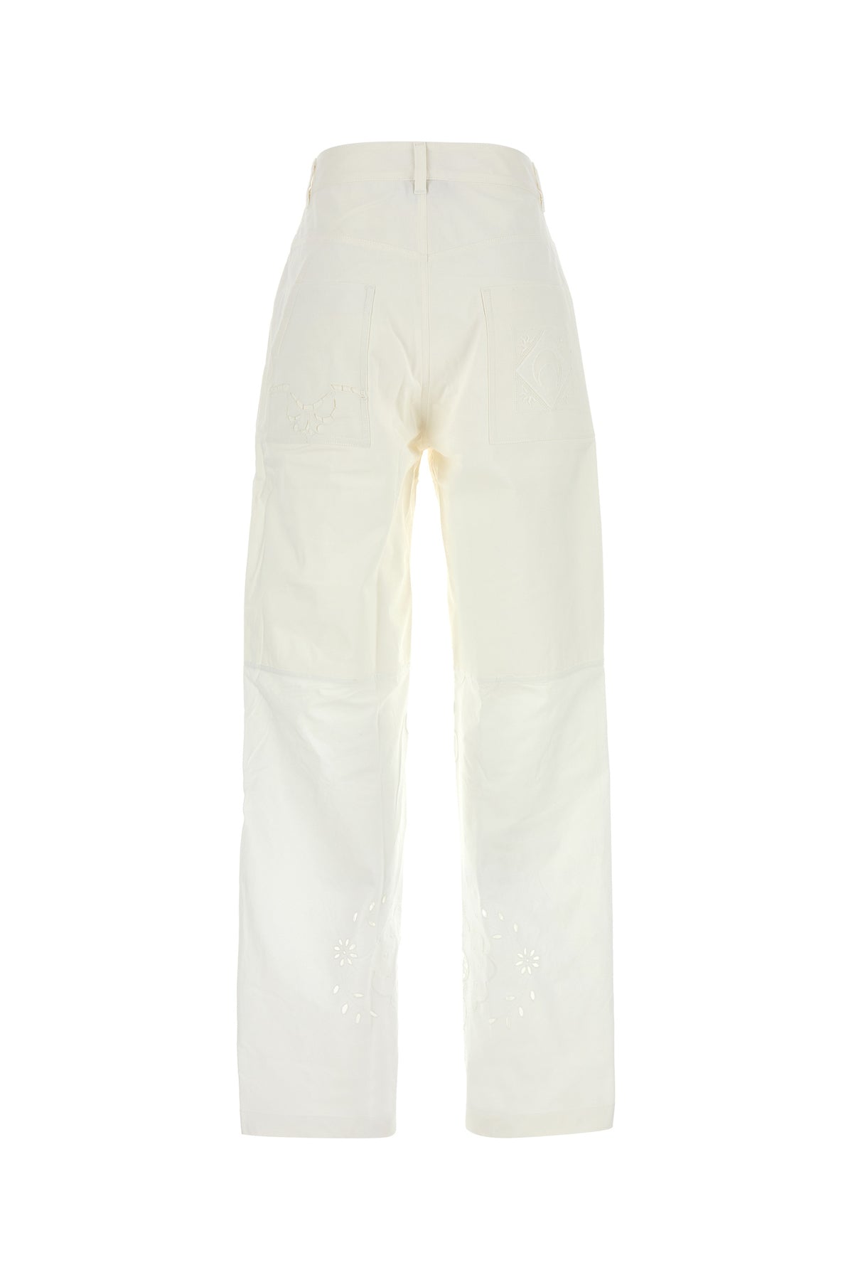 Pantalone realizzato in puro cotone caratterizzato da particolare ricamo tonale sulla parte frontale e sul retro.
