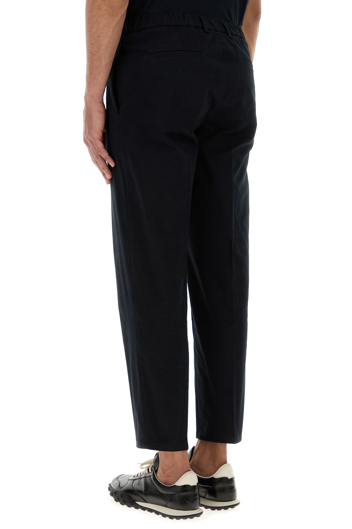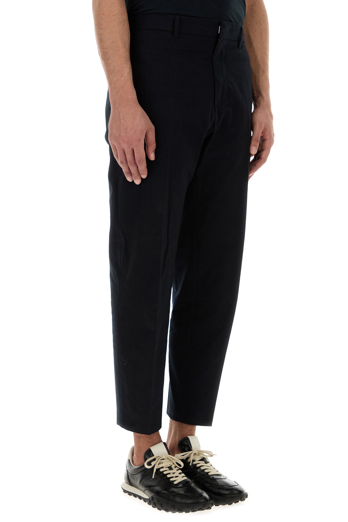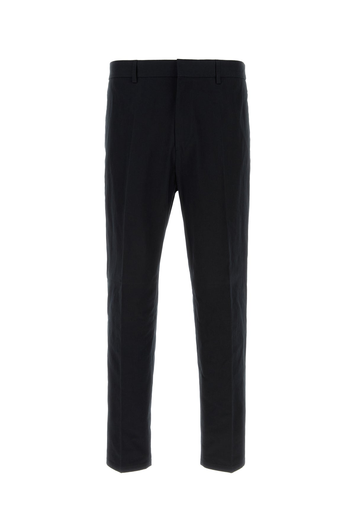 Pantalone realizzato in puro cotone caratterizzato da pieghe centrali stirate.