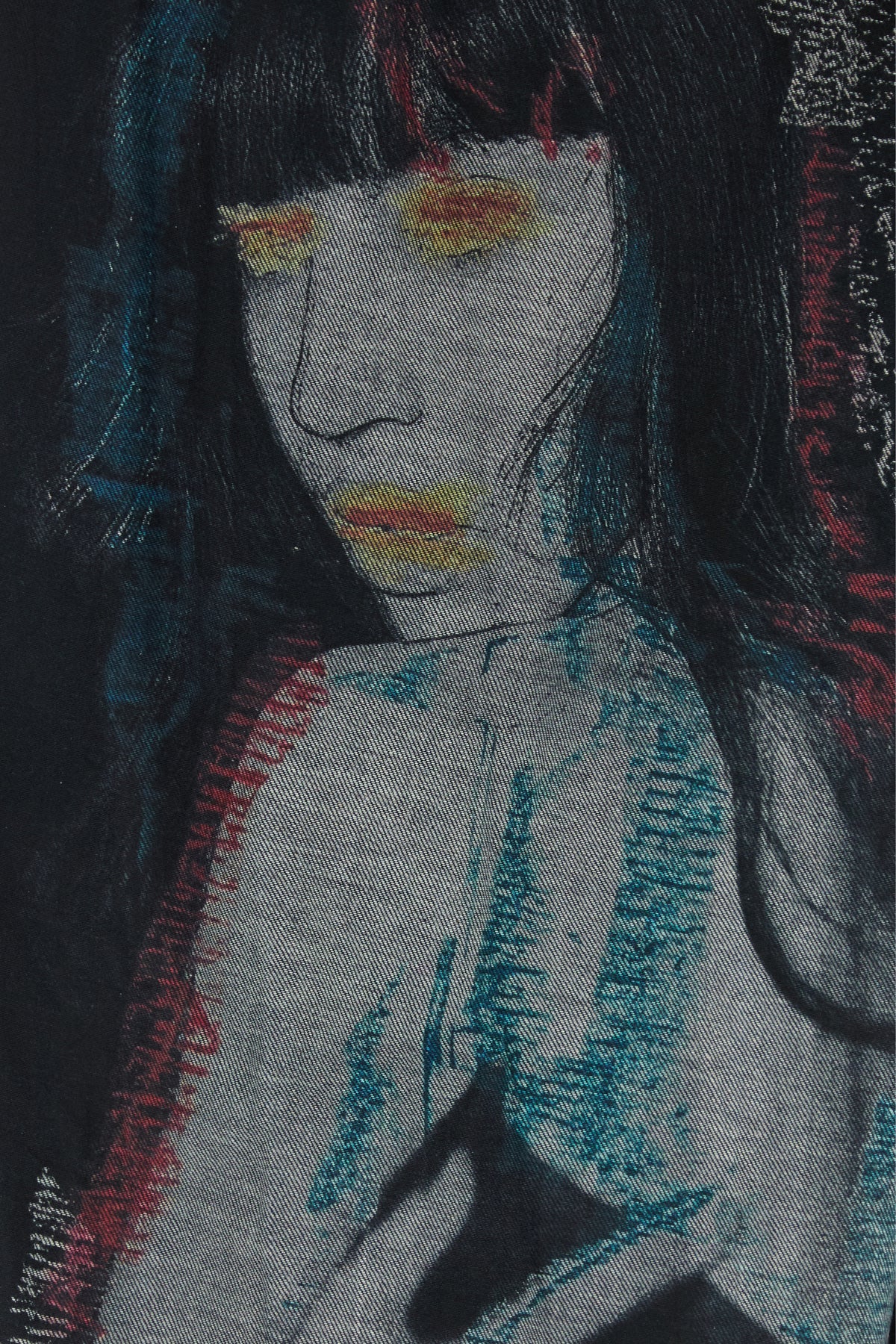 Pantalone realizzato in puro cotone caratterizzato da cavallo basso e particolare stampa a contrasto sul retro.