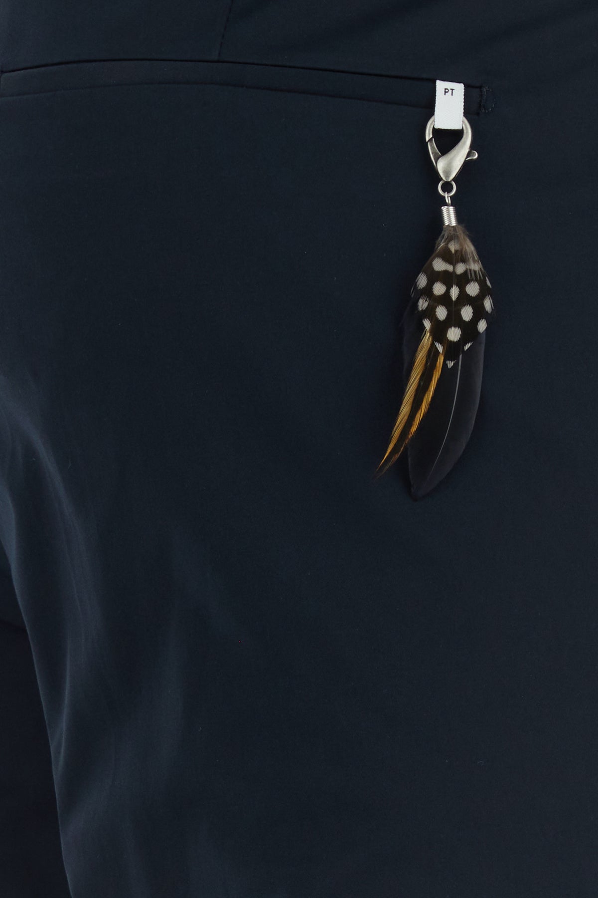 Pantalone realizzato in cotone stretch arricchito da piuma amovibile sul retro.