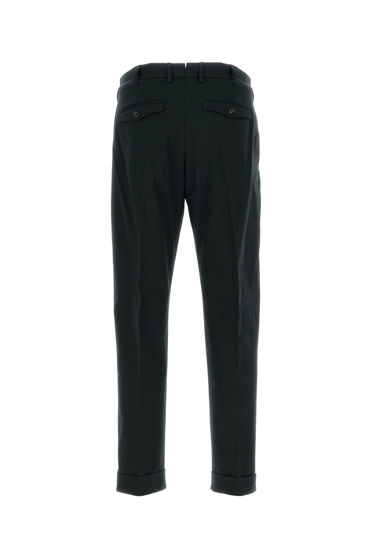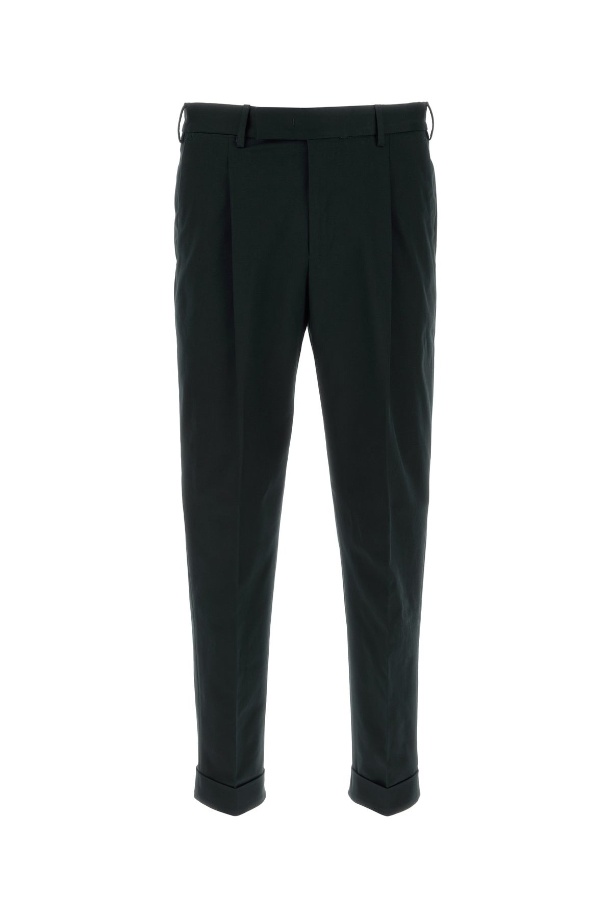 Pantalone realizzato in cotone stretch caratterizzato da pieghe invertite.